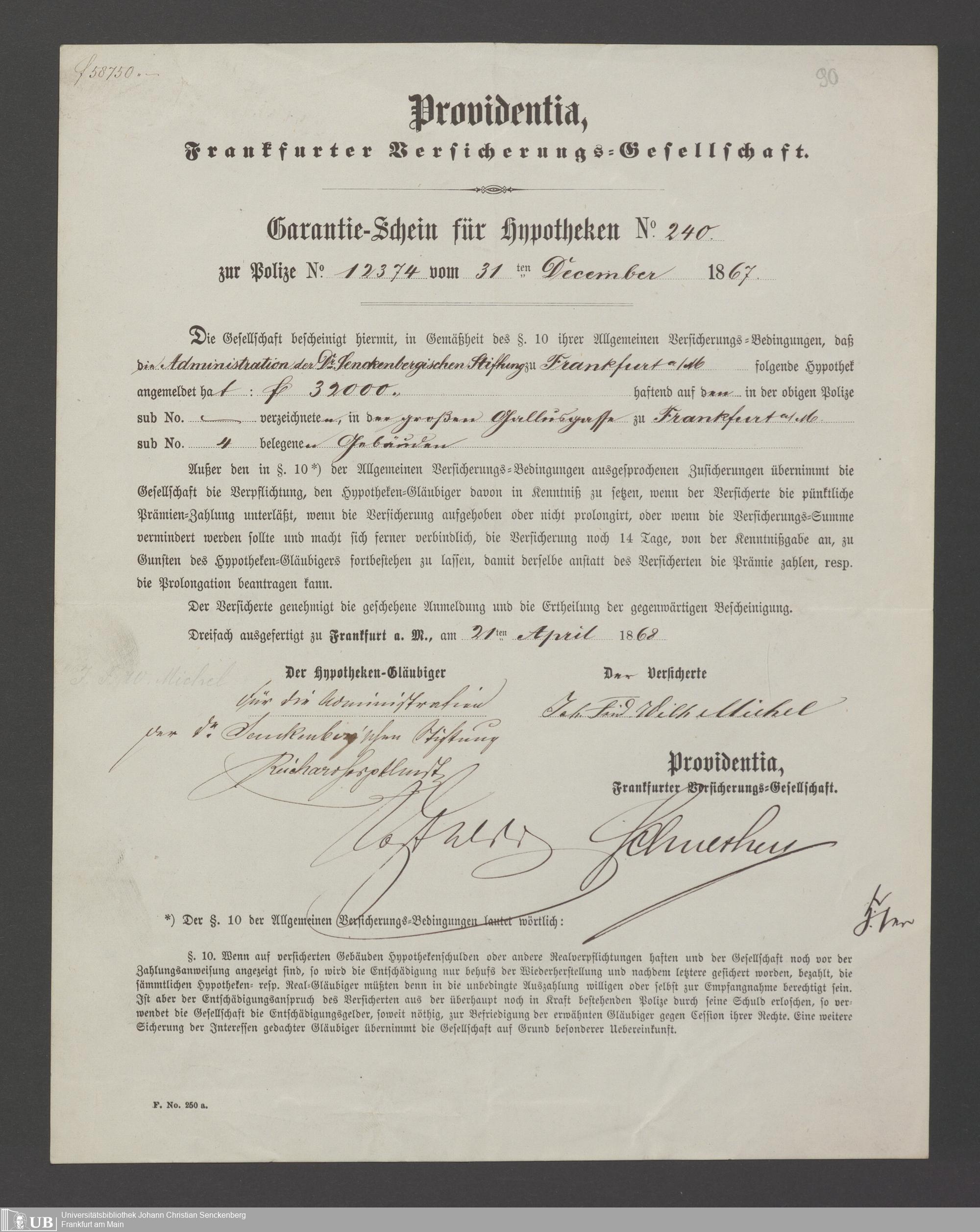 B 5 Dr. Senckenbergische Stiftung, 21 - Feuerversicherungspapiere