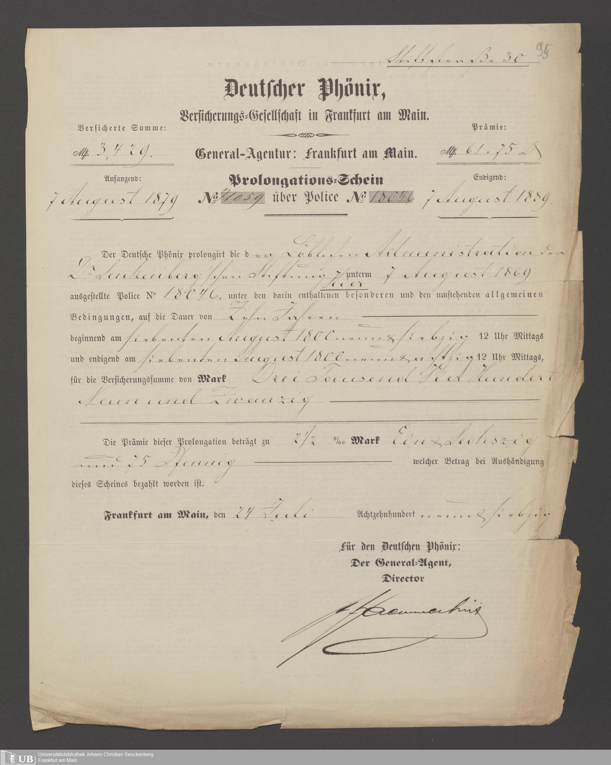 B 5 Dr. Senckenbergische Stiftung, 21 - Feuerversicherungspapiere