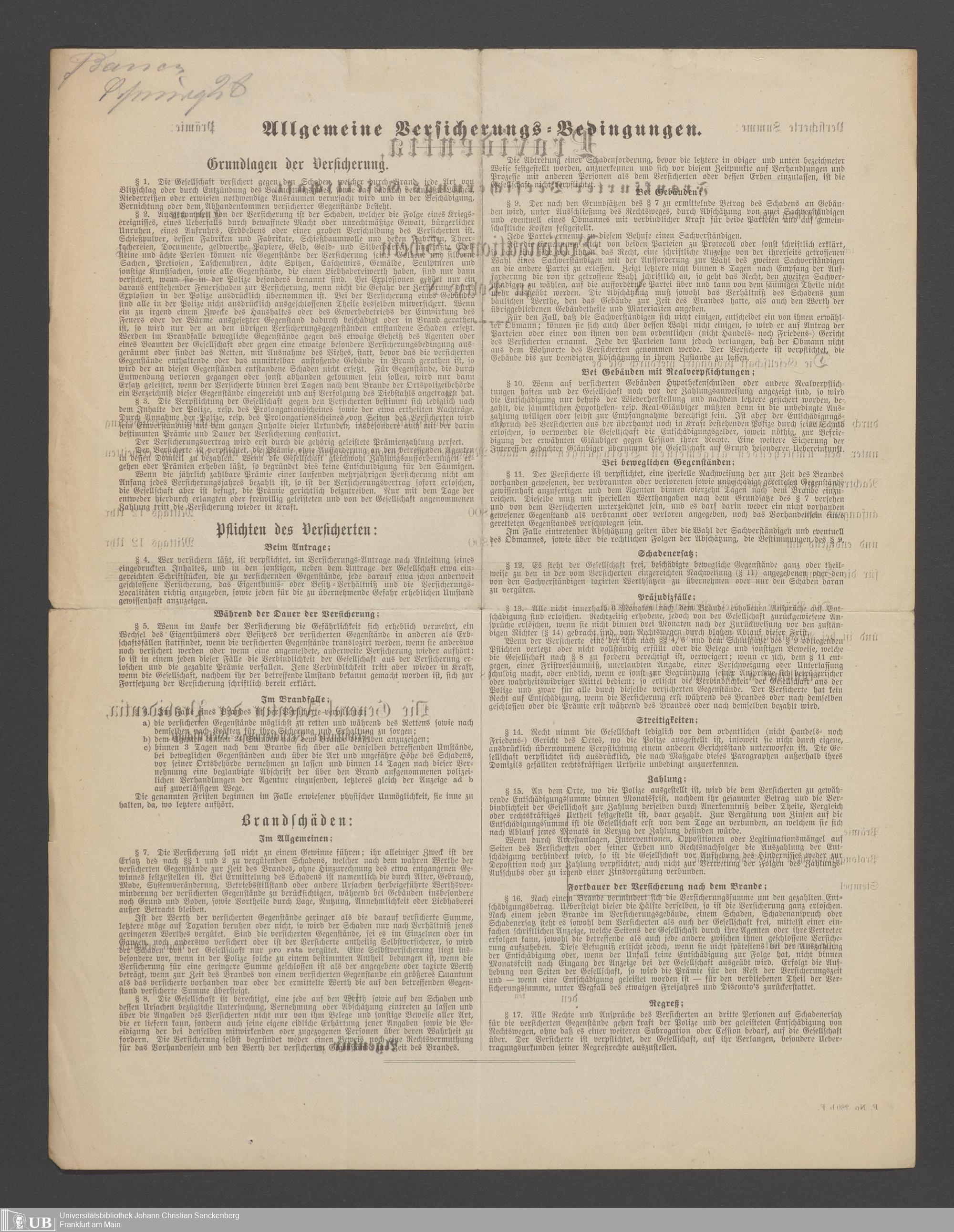 B 5 Dr. Senckenbergische Stiftung, 21 - Feuerversicherungspapiere