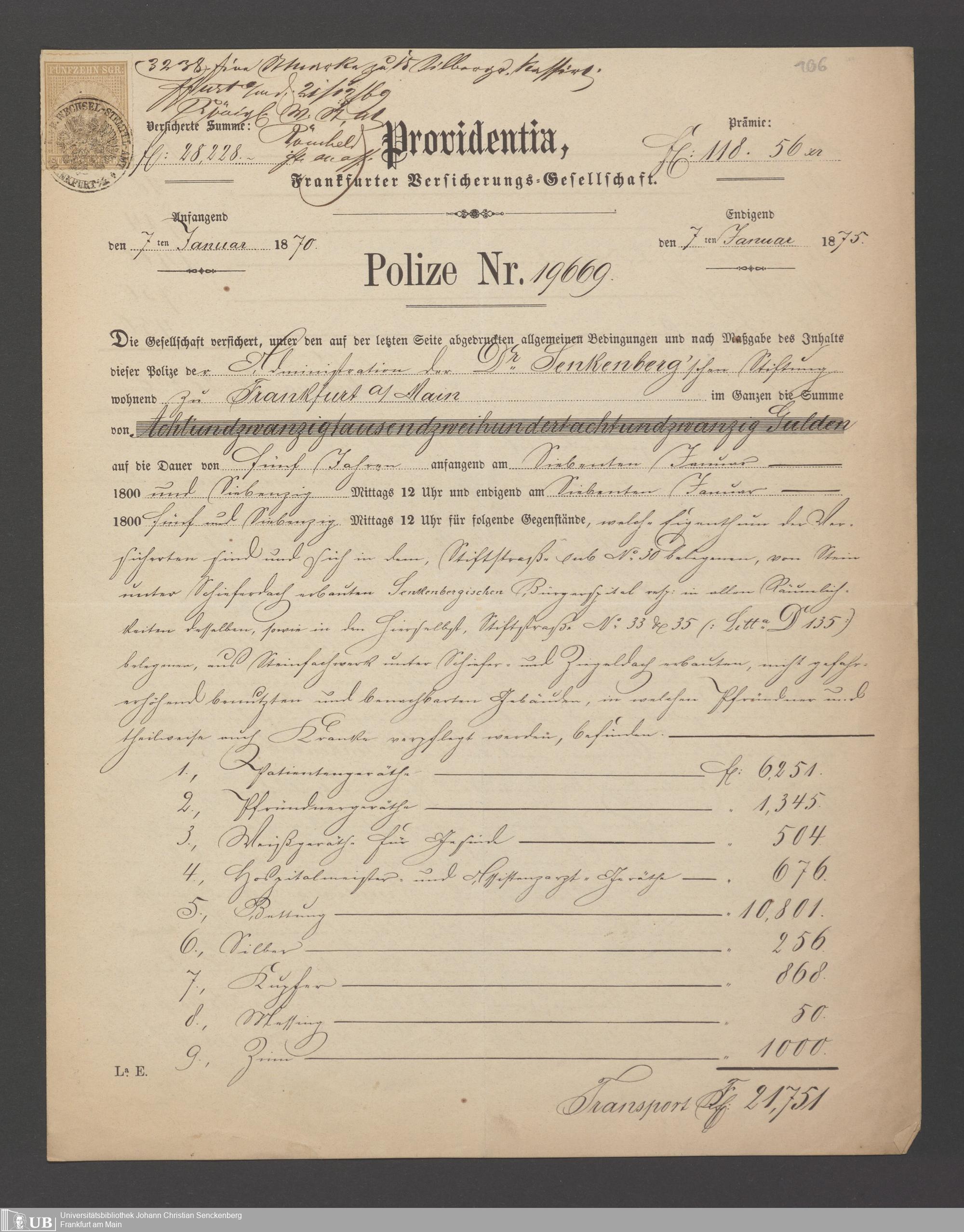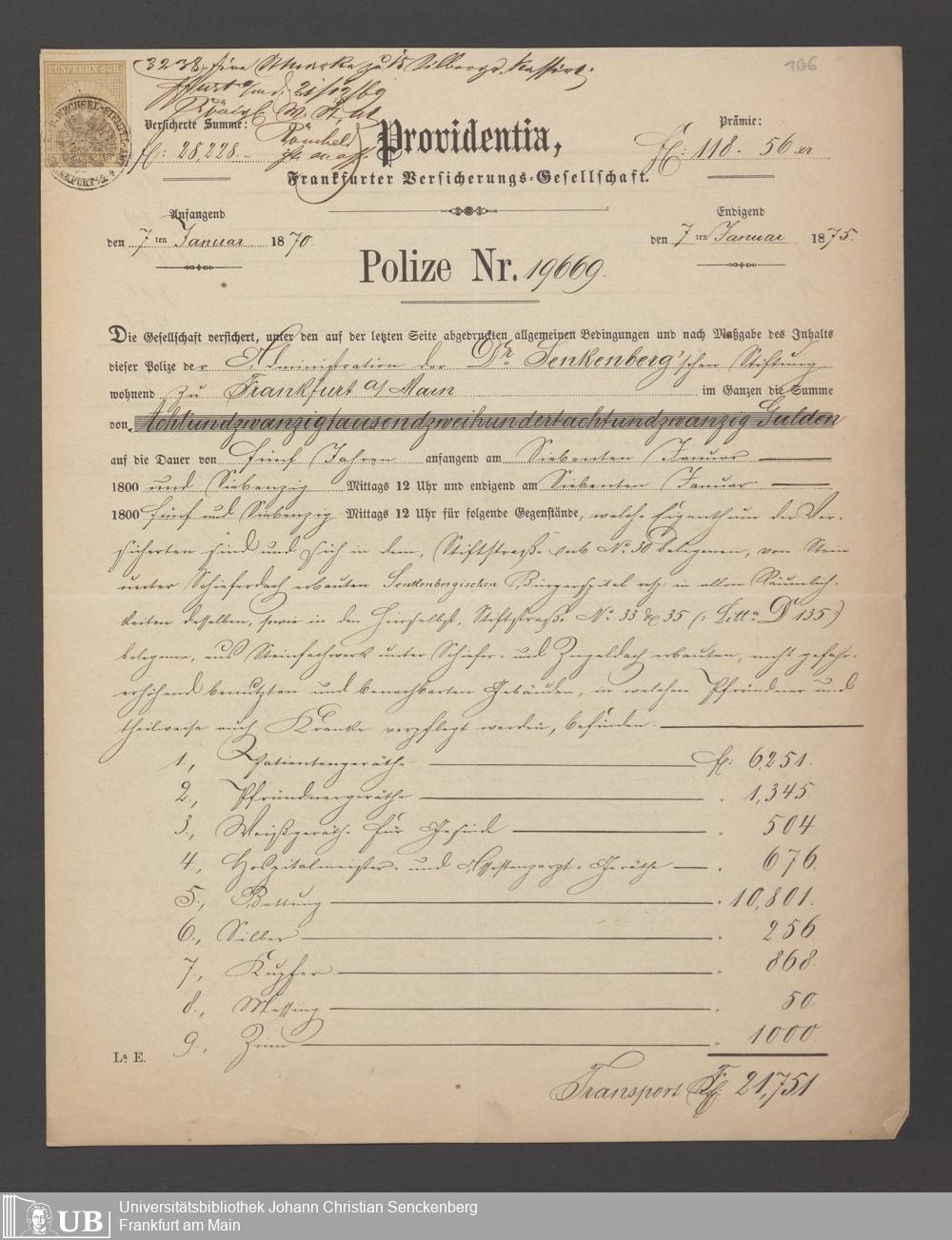 B 5 Dr. Senckenbergische Stiftung, 21 - Feuerversicherungspapiere