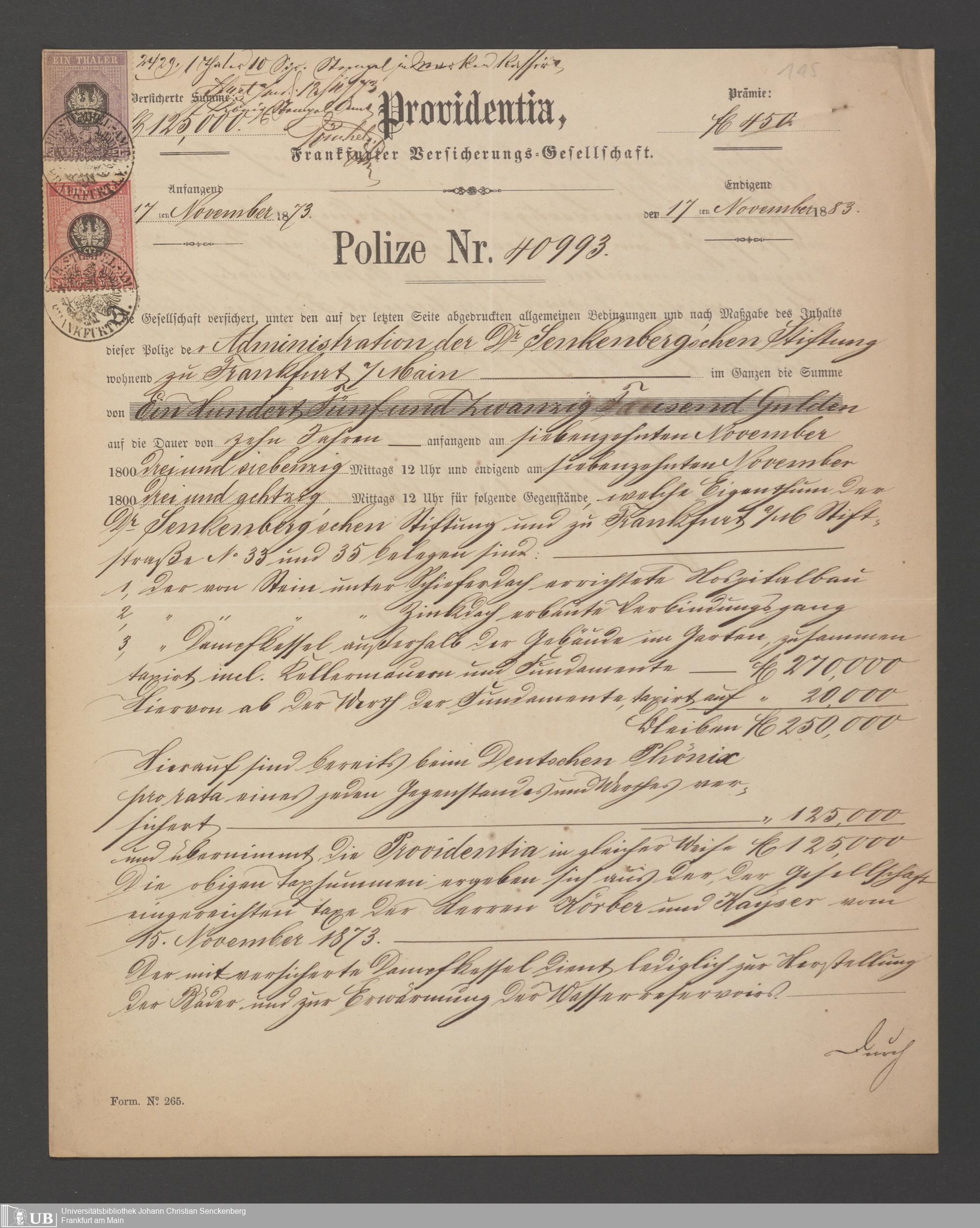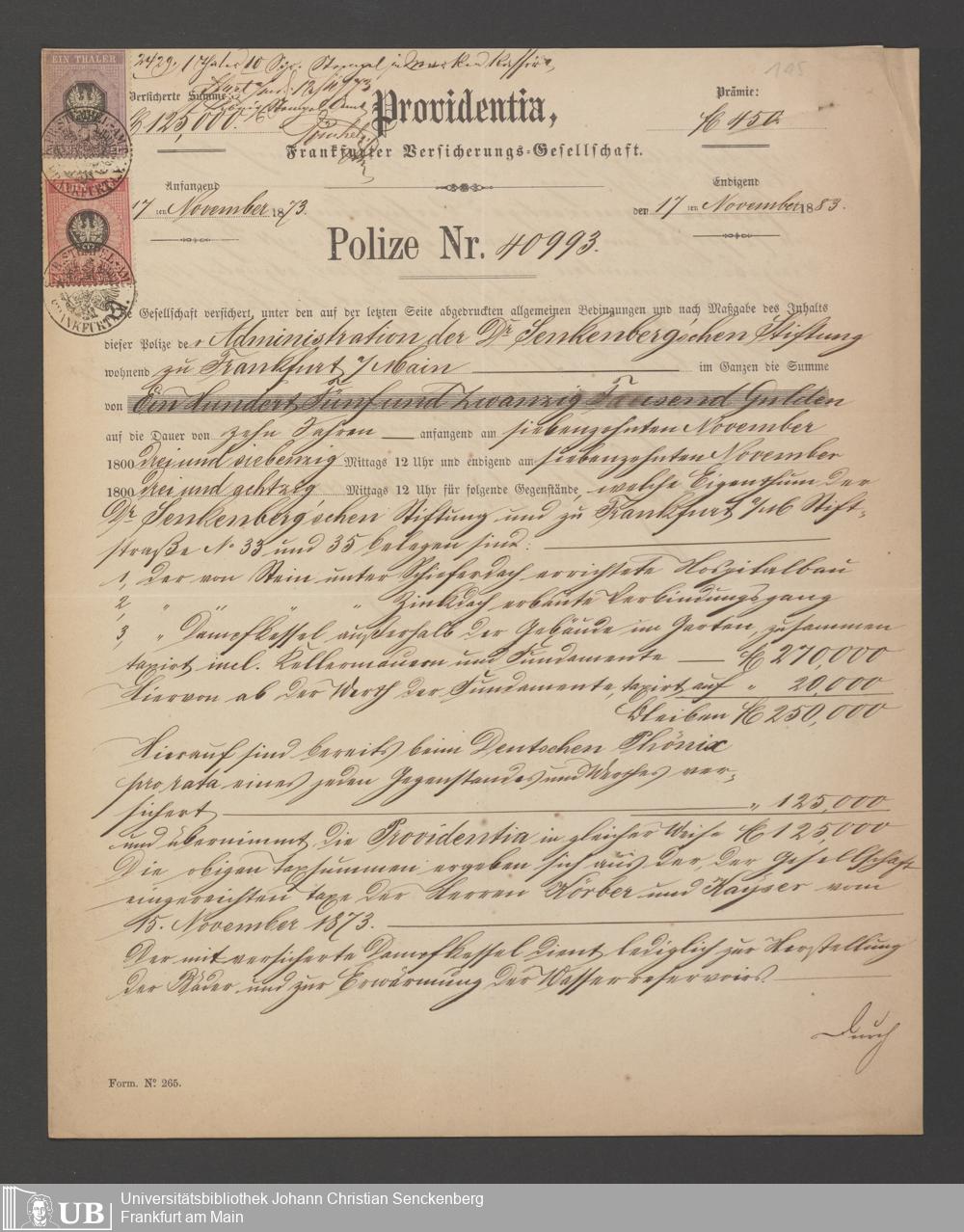 B 5 Dr. Senckenbergische Stiftung, 21 - Feuerversicherungspapiere