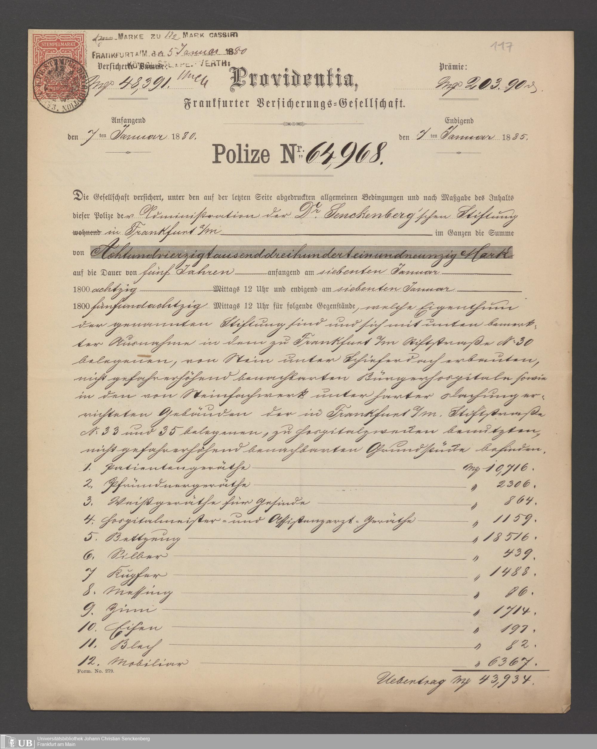 B 5 Dr. Senckenbergische Stiftung, 21 - Feuerversicherungspapiere