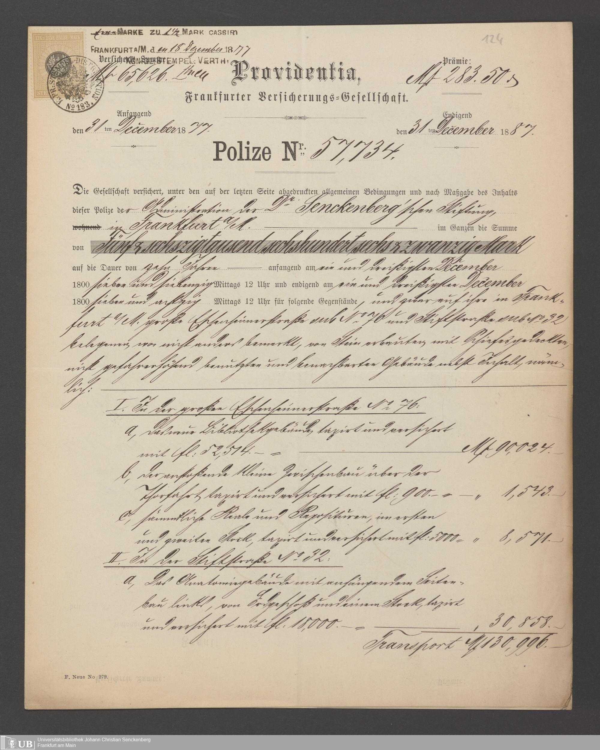 B 5 Dr. Senckenbergische Stiftung, 21 - Feuerversicherungspapiere