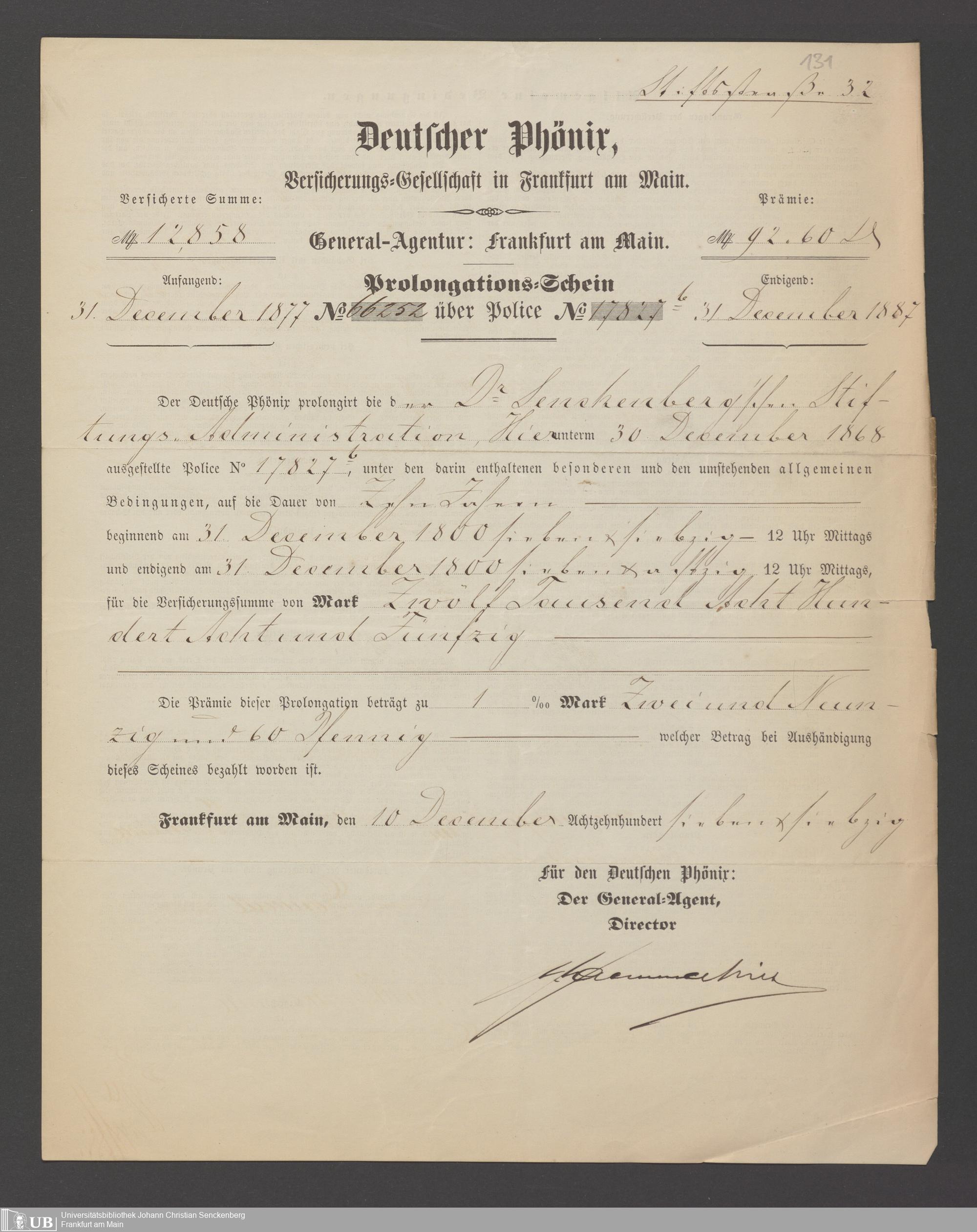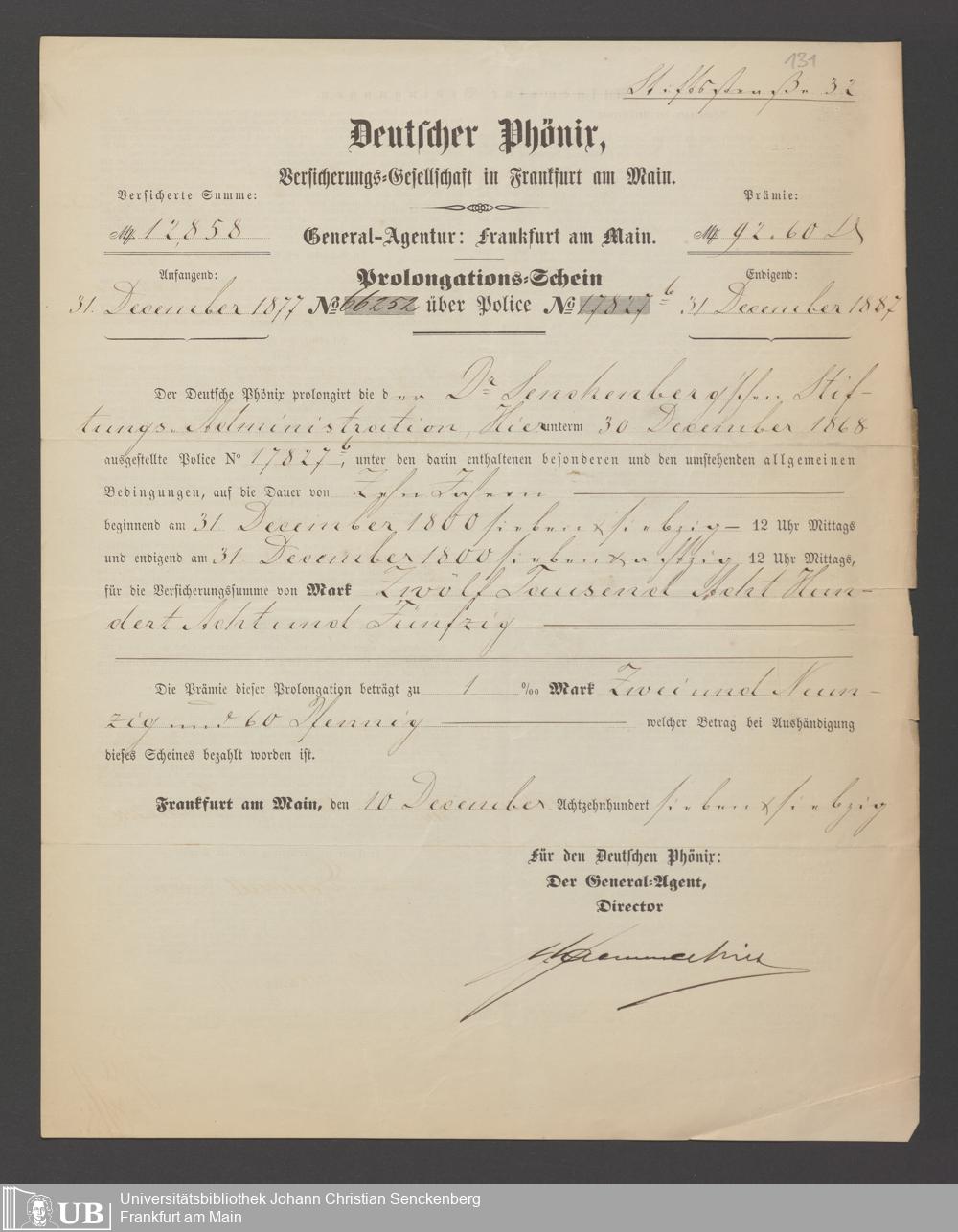 B 5 Dr. Senckenbergische Stiftung, 21 - Feuerversicherungspapiere
