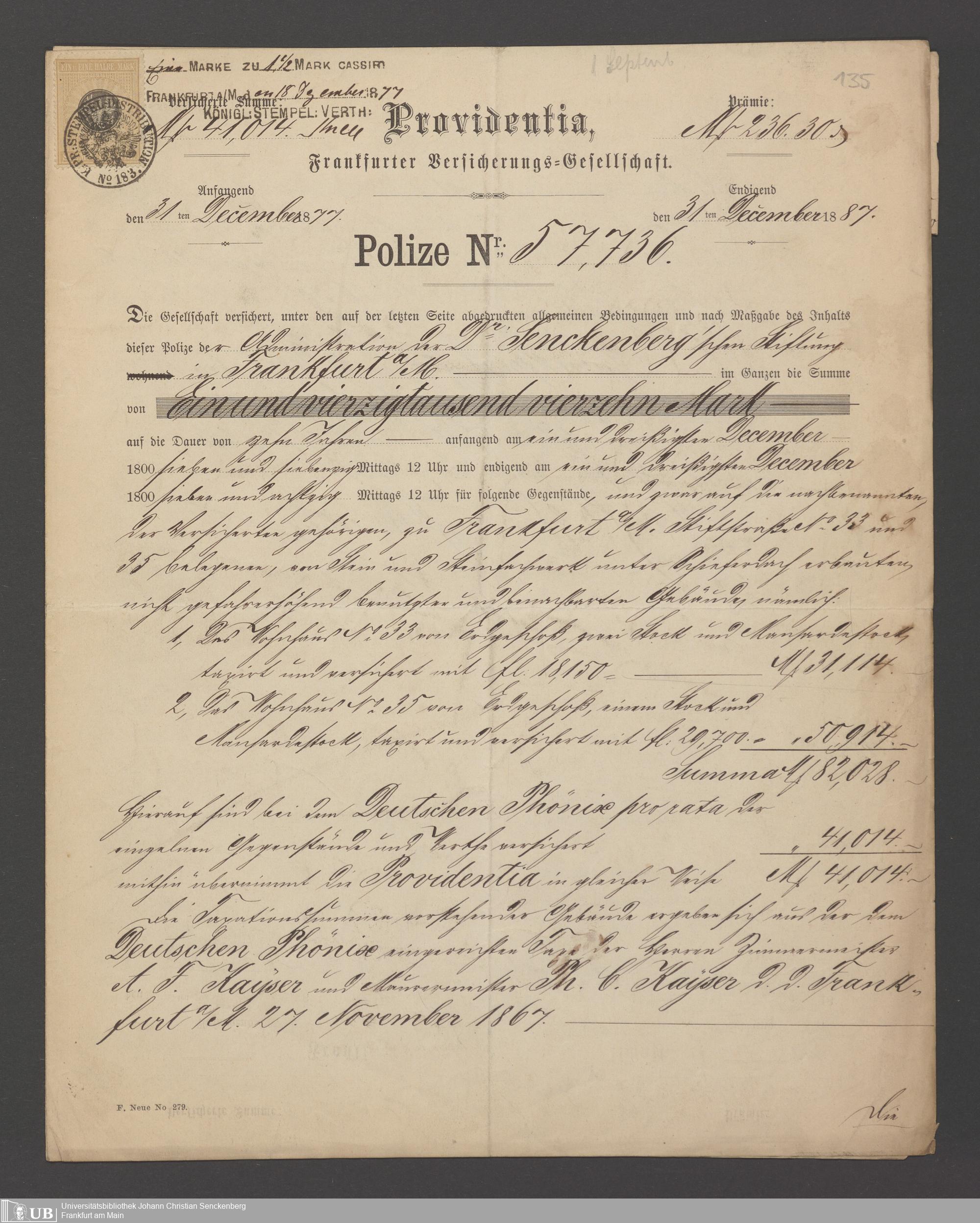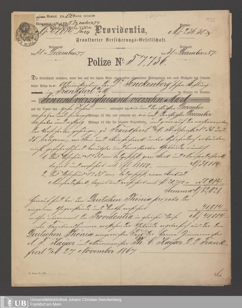 B 5 Dr. Senckenbergische Stiftung, 21 - Feuerversicherungspapiere