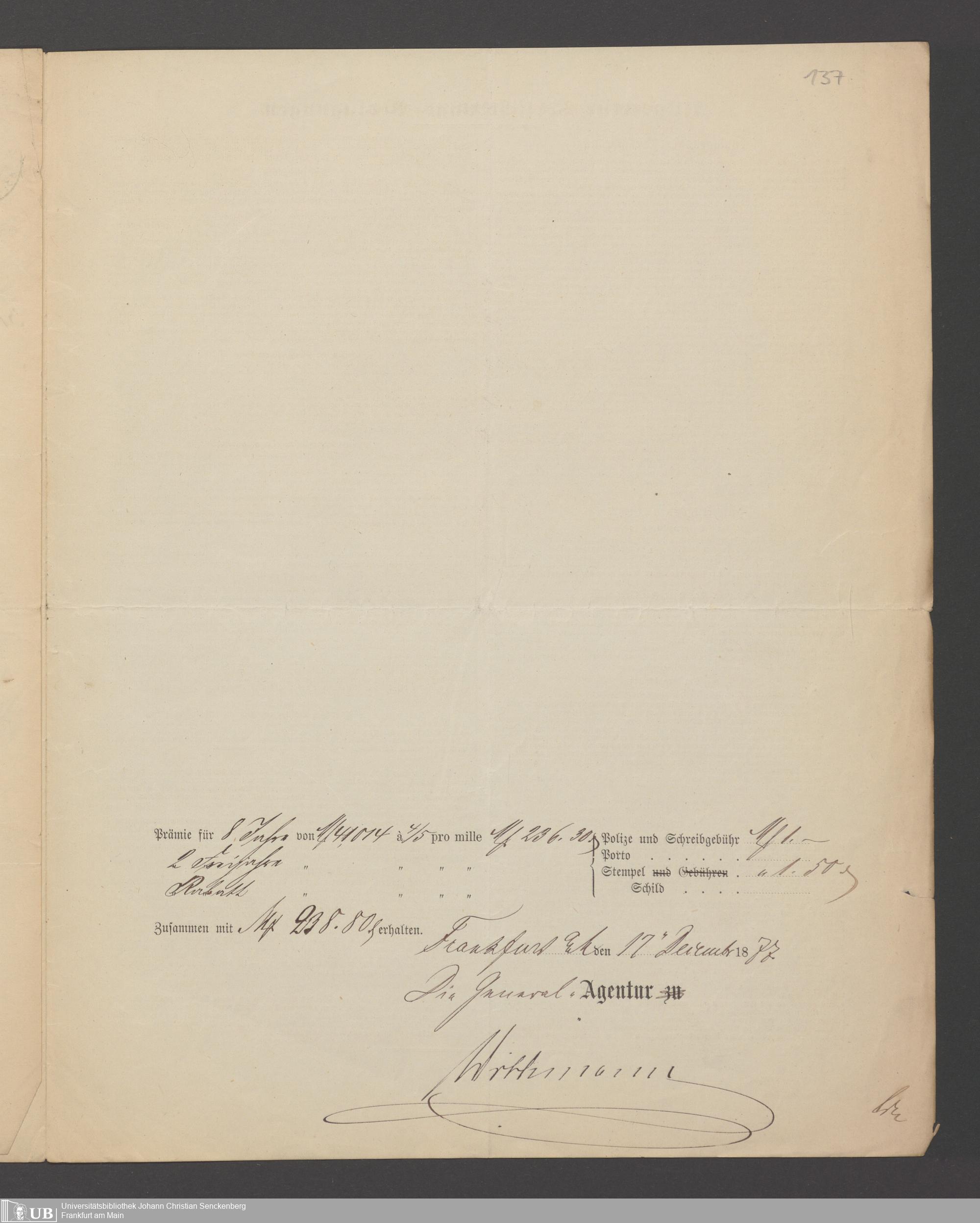 B 5 Dr. Senckenbergische Stiftung, 21 - Feuerversicherungspapiere