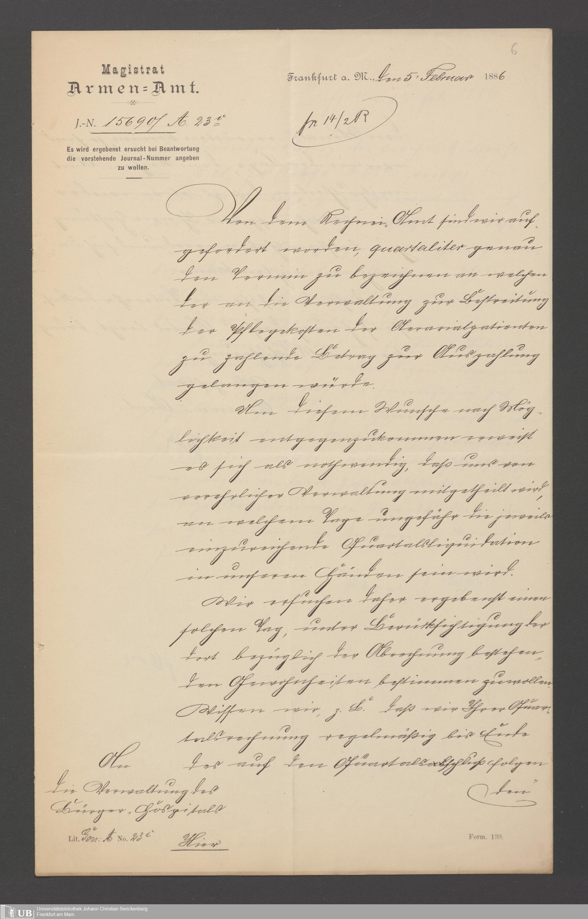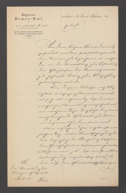 B 5 Dr. Senckenbergische Stiftung, 22 - Schriftwechsel zwischen der Verwaltung des Bürgerhospitals und dem Armenamt der Stadt Frankfurt