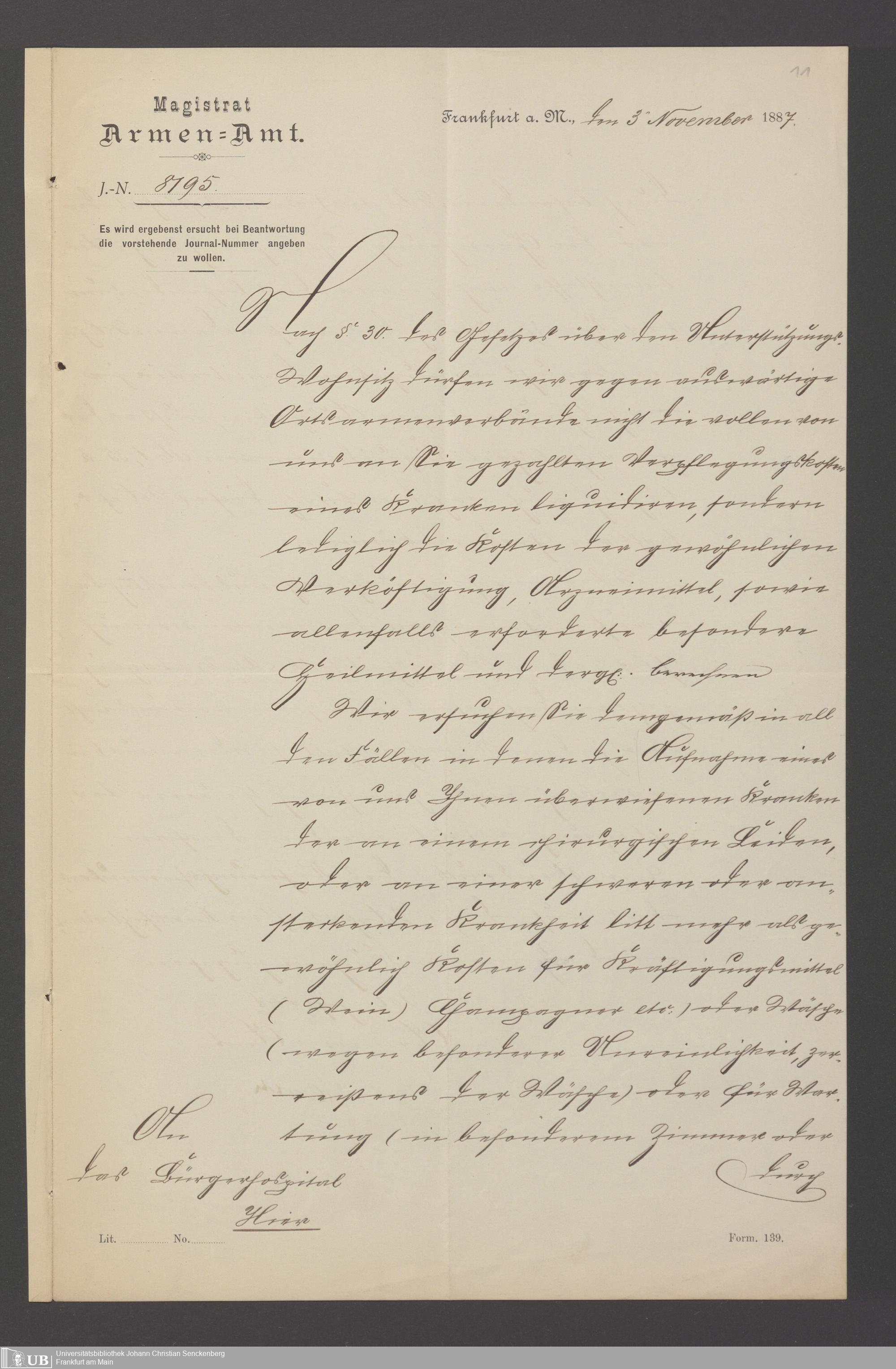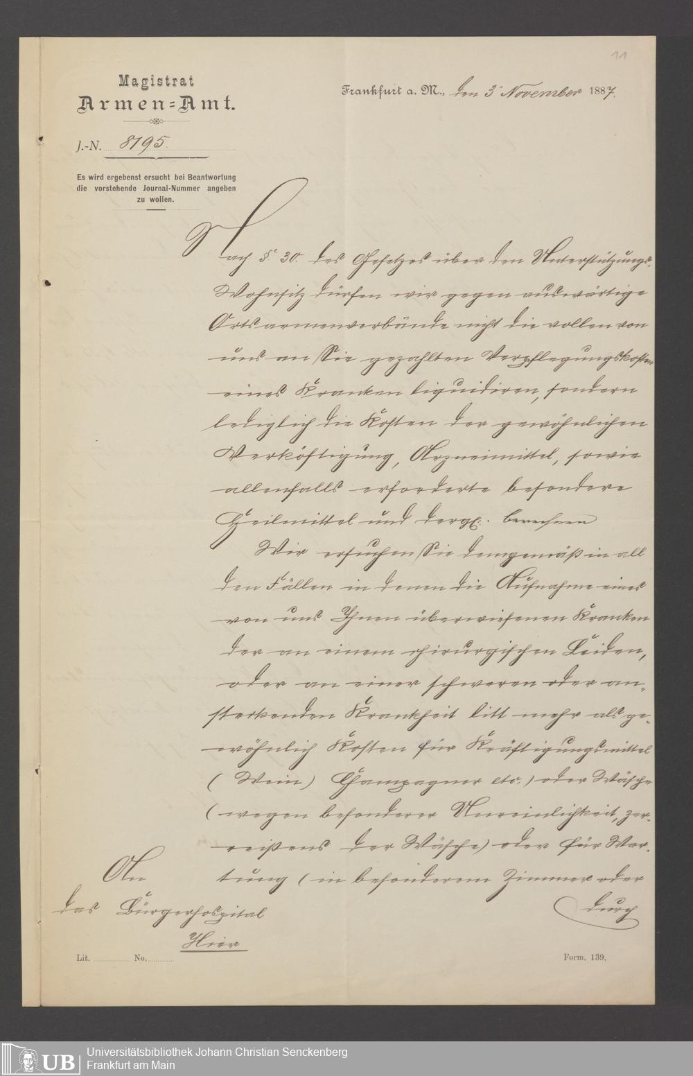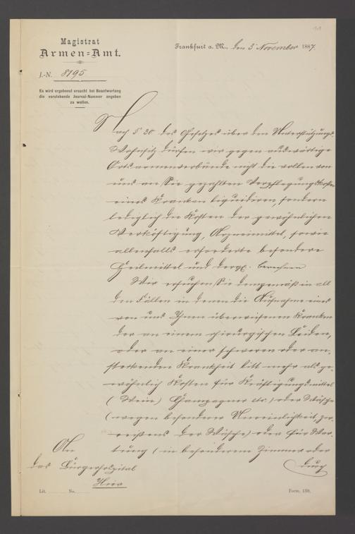 B 5 Dr. Senckenbergische Stiftung, 22 - Schriftwechsel zwischen der Verwaltung des Bürgerhospitals und dem Armenamt der Stadt Frankfurt