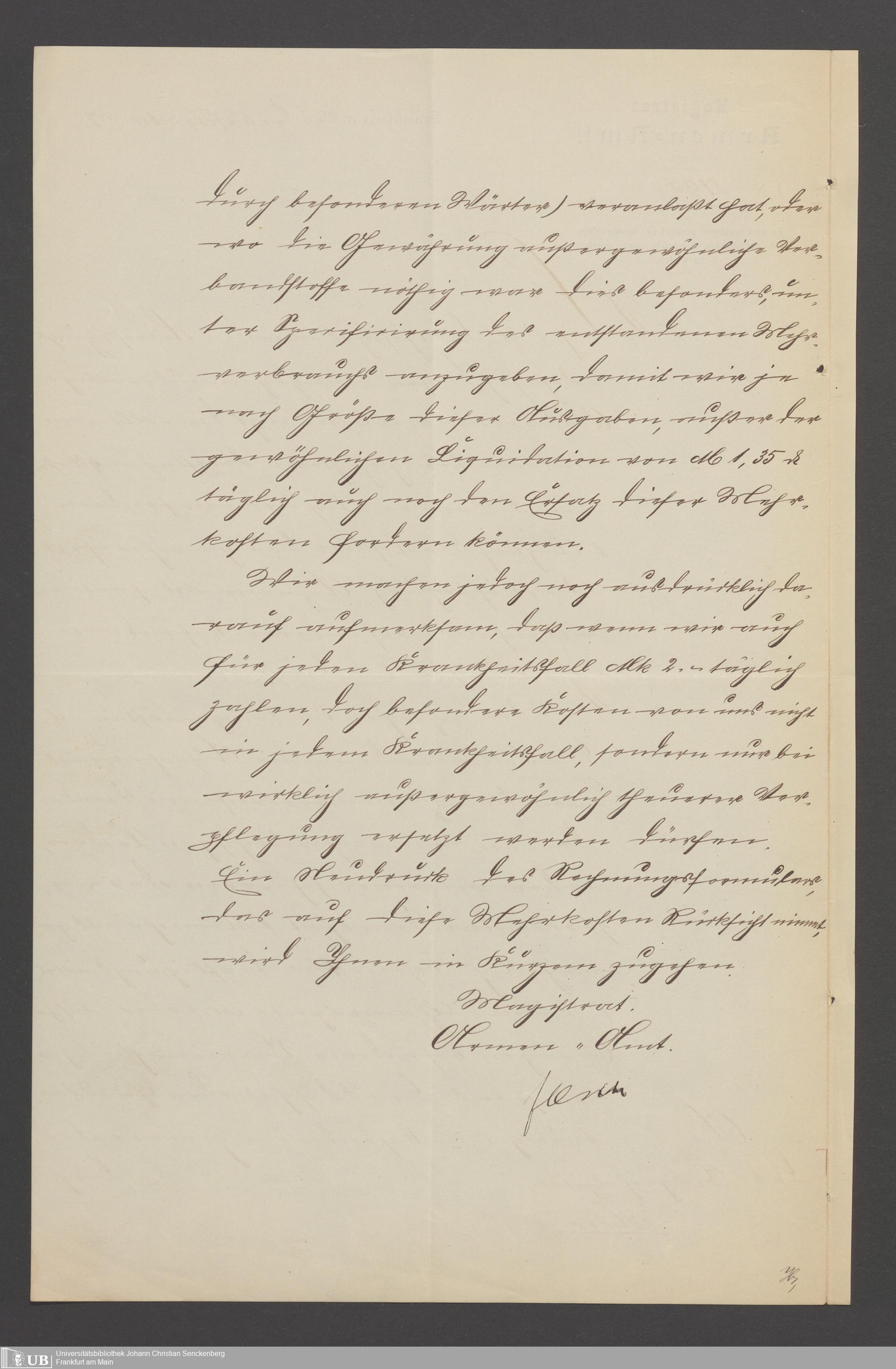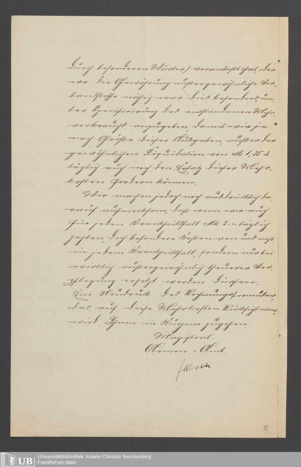 B 5 Dr. Senckenbergische Stiftung, 22 - Schriftwechsel zwischen der Verwaltung des Bürgerhospitals und dem Armenamt der Stadt Frankfurt