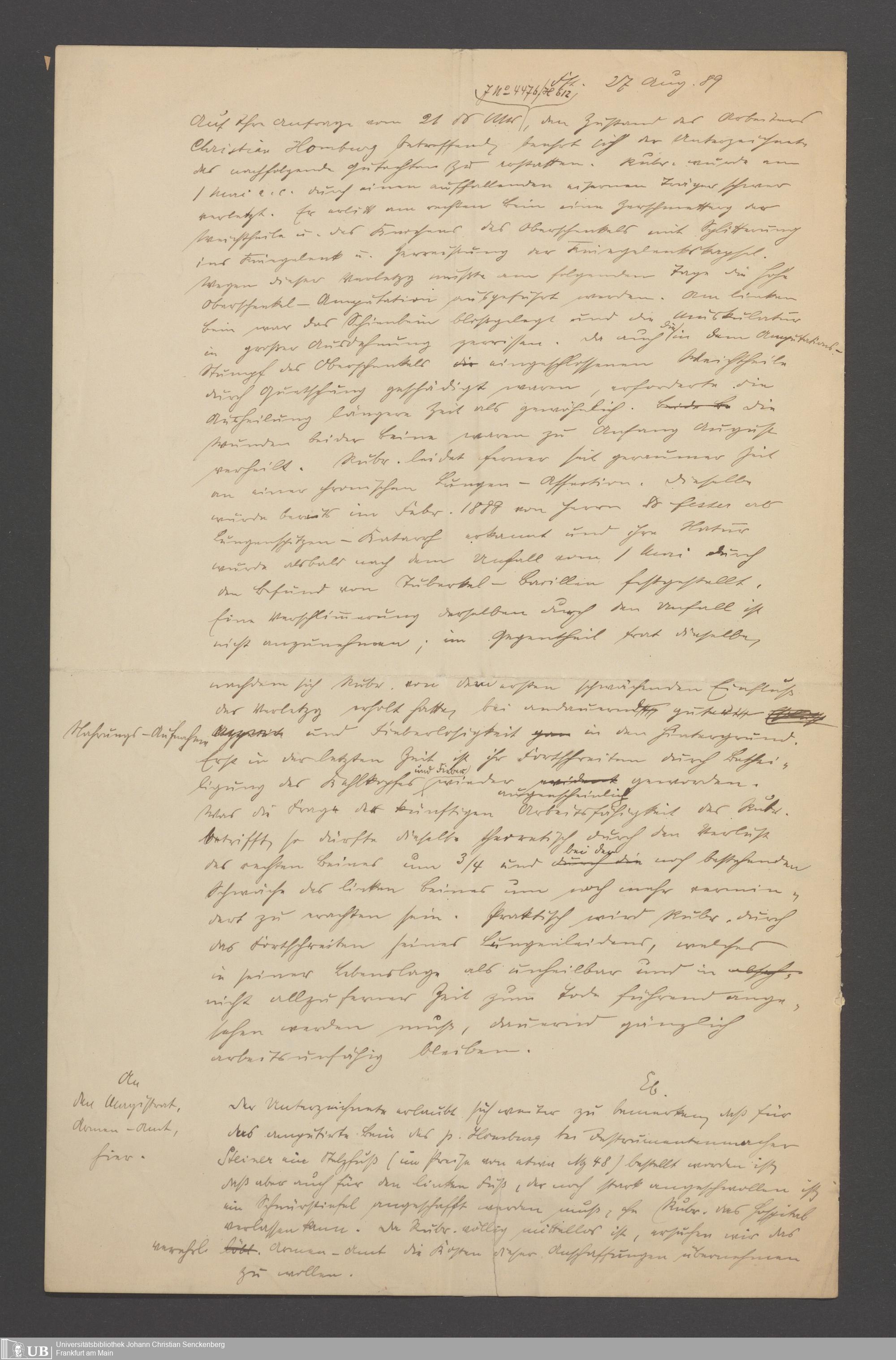 B 5 Dr. Senckenbergische Stiftung, 22 - Schriftwechsel zwischen der Verwaltung des Bürgerhospitals und dem Armenamt der Stadt Frankfurt
