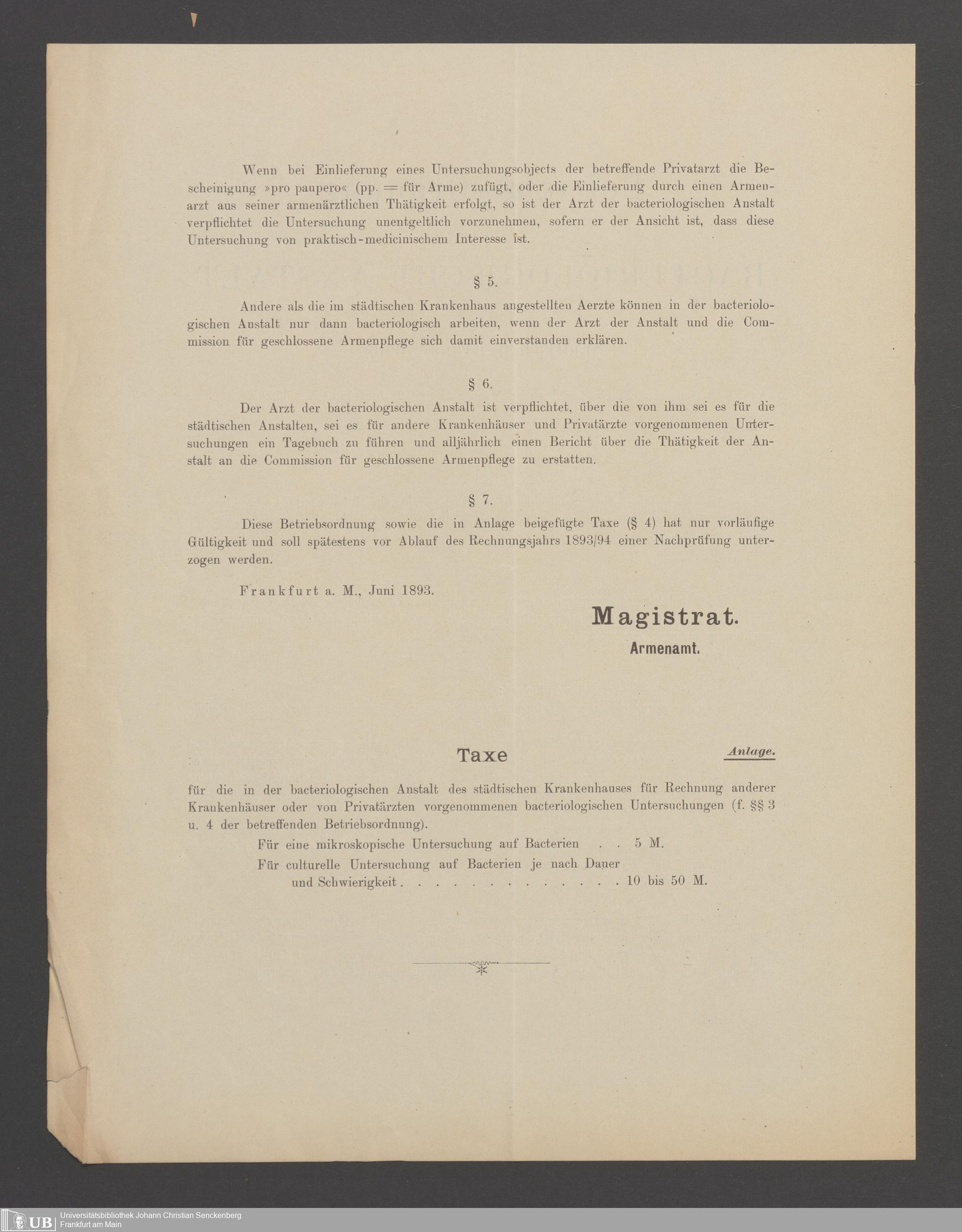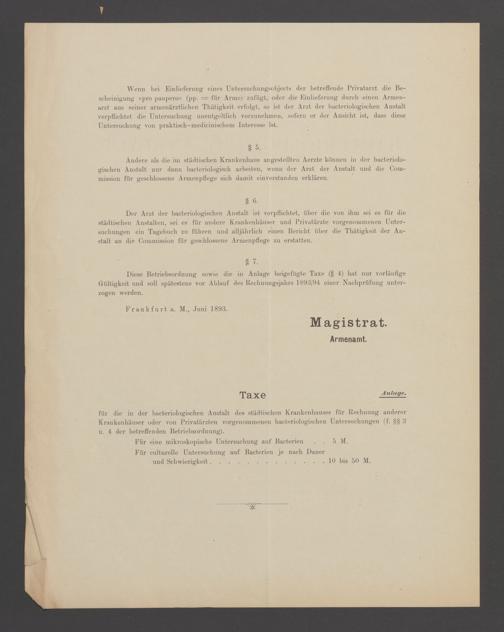 B 5 Dr. Senckenbergische Stiftung, 22 - Schriftwechsel zwischen der Verwaltung des Bürgerhospitals und dem Armenamt der Stadt Frankfurt
