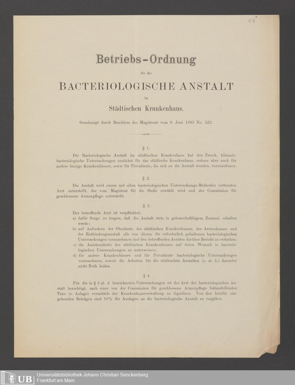 B 5 Dr. Senckenbergische Stiftung, 22 - Schriftwechsel zwischen der Verwaltung des Bürgerhospitals und dem Armenamt der Stadt Frankfurt