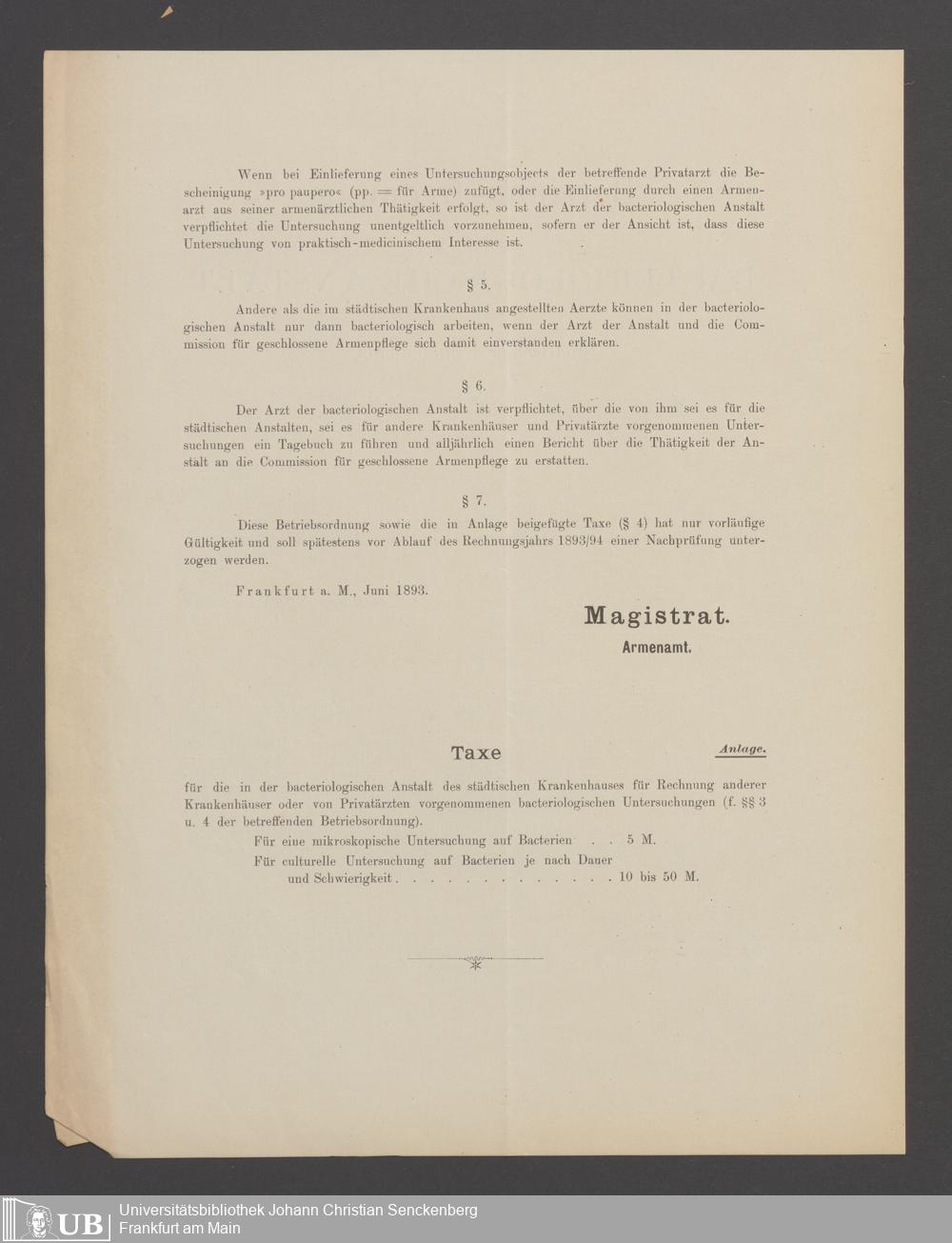 B 5 Dr. Senckenbergische Stiftung, 22 - Schriftwechsel zwischen der Verwaltung des Bürgerhospitals und dem Armenamt der Stadt Frankfurt