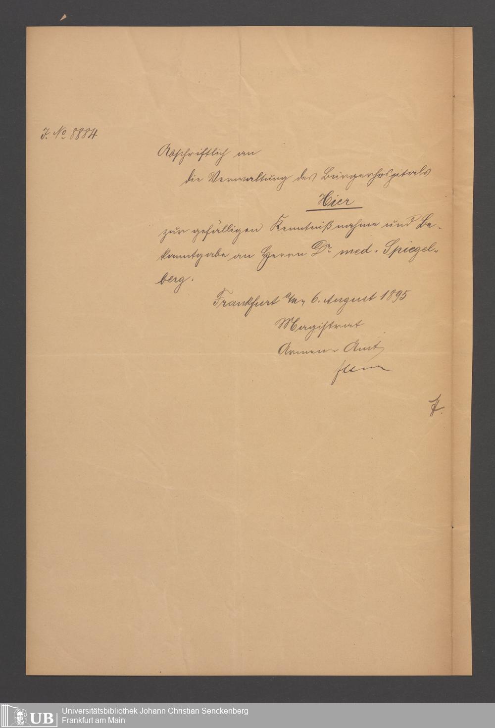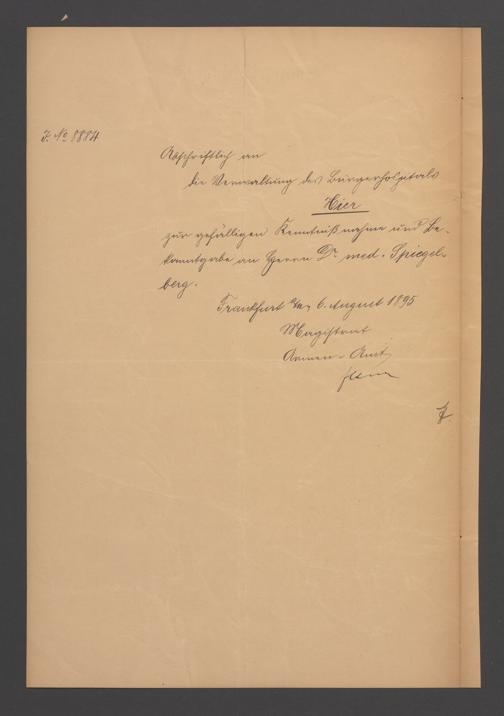 B 5 Dr. Senckenbergische Stiftung, 22 - Schriftwechsel zwischen der Verwaltung des Bürgerhospitals und dem Armenamt der Stadt Frankfurt