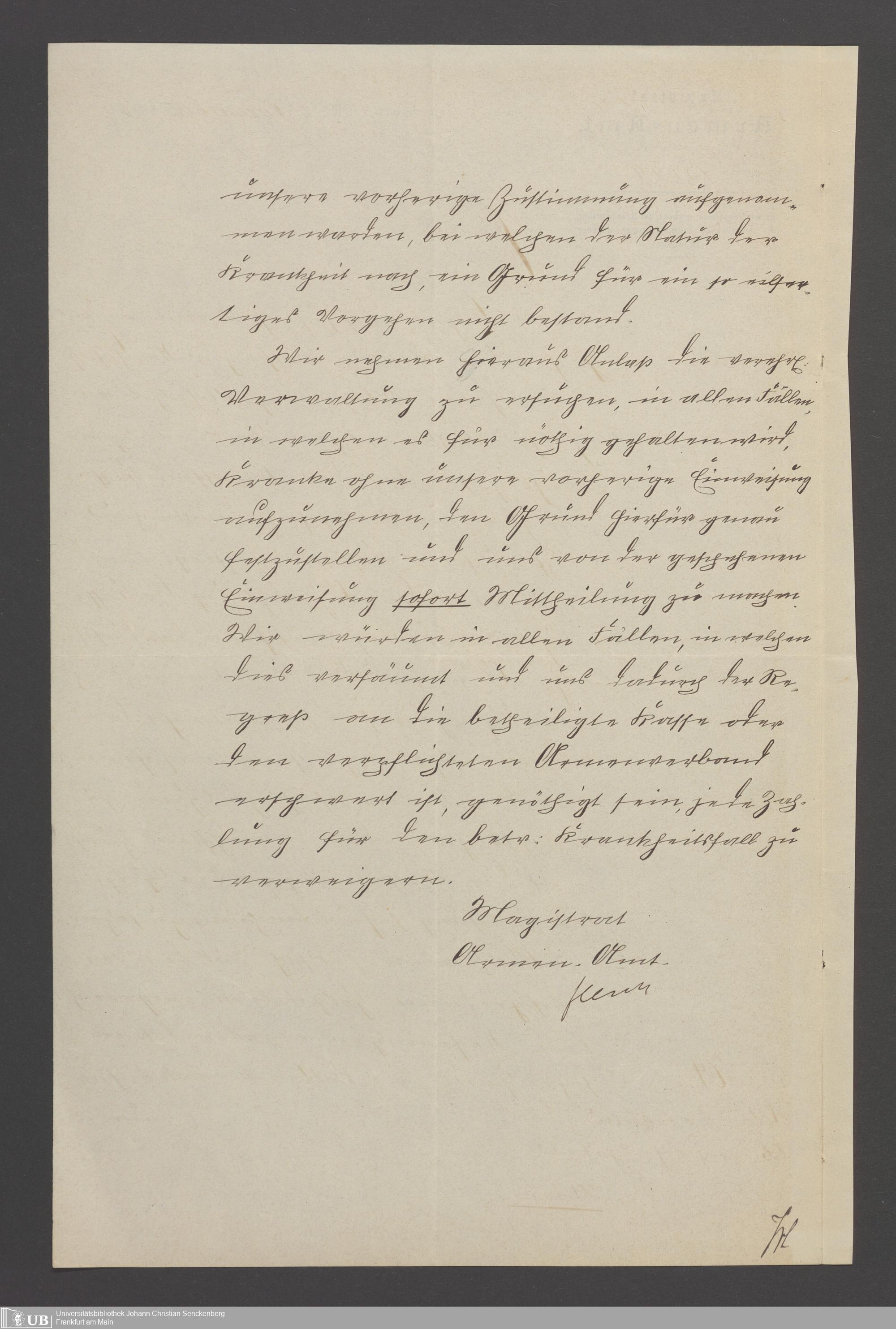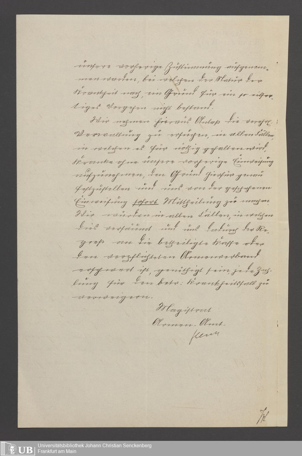 B 5 Dr. Senckenbergische Stiftung, 22 - Schriftwechsel zwischen der Verwaltung des Bürgerhospitals und dem Armenamt der Stadt Frankfurt
