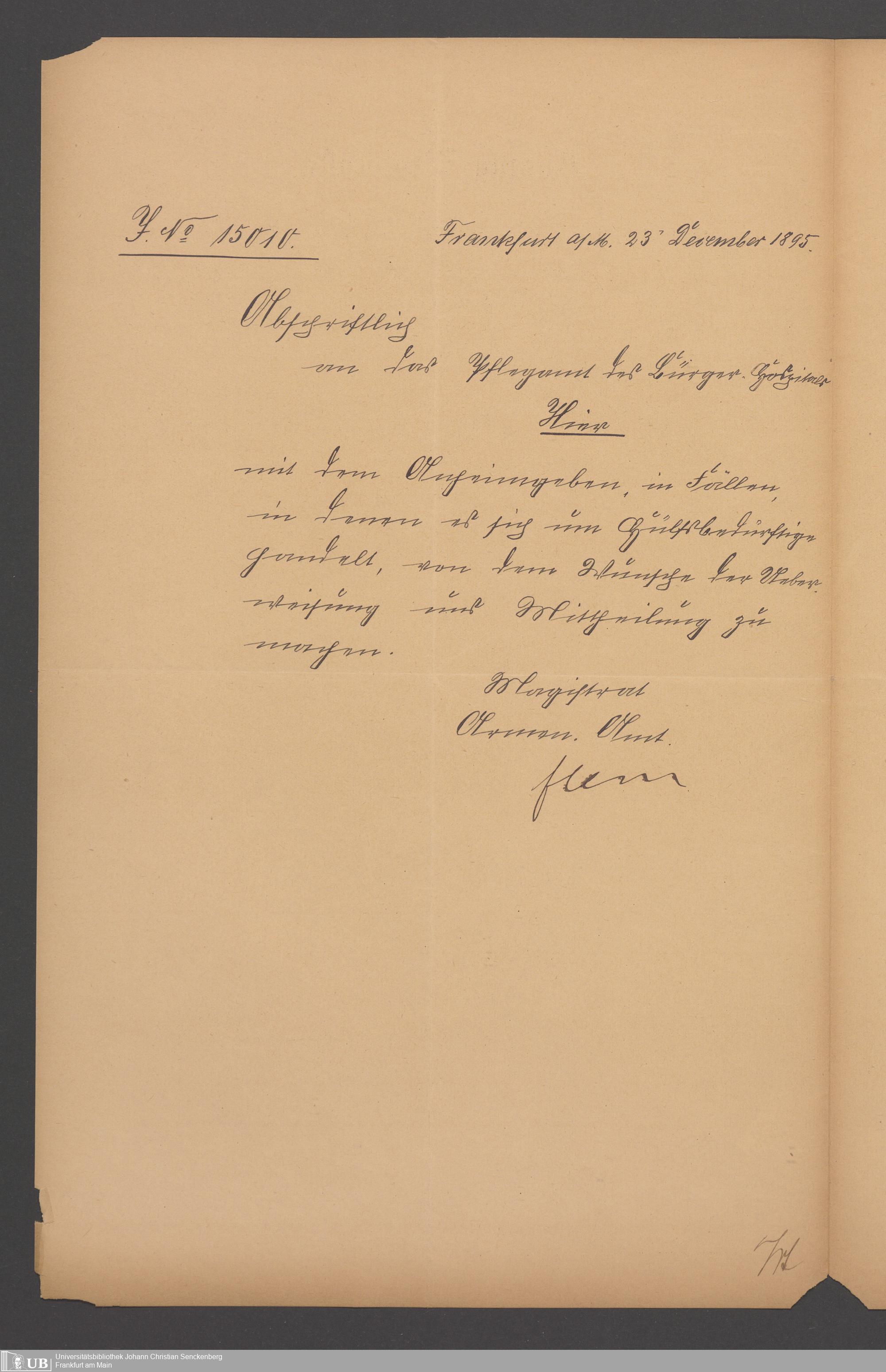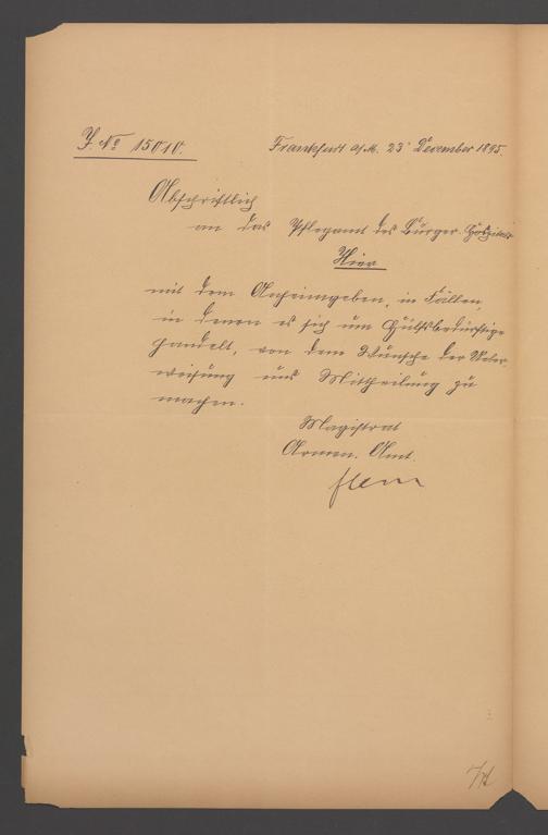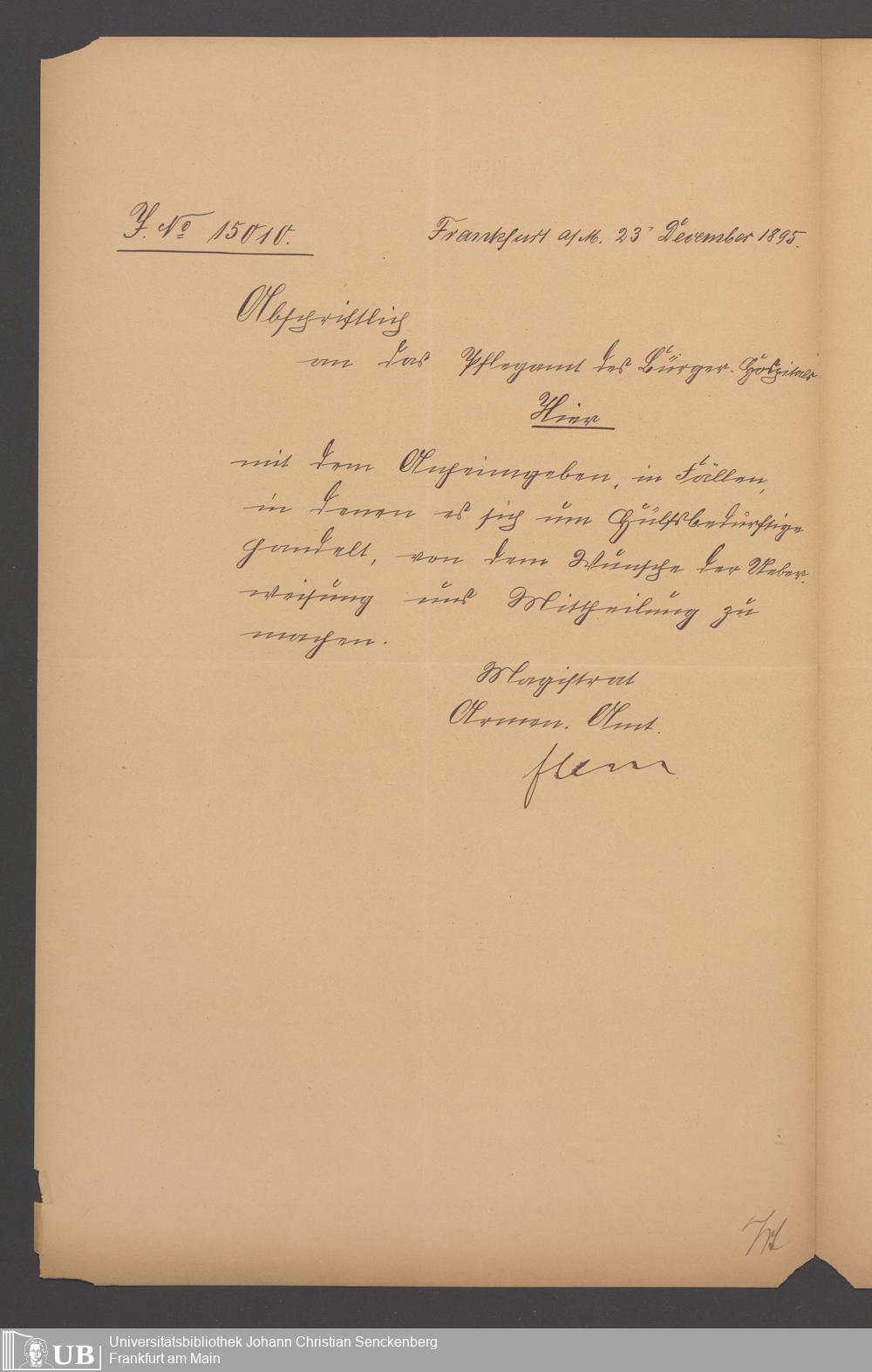 B 5 Dr. Senckenbergische Stiftung, 22 - Schriftwechsel zwischen der Verwaltung des Bürgerhospitals und dem Armenamt der Stadt Frankfurt