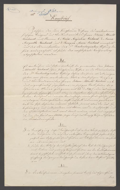 B 5 Dr. Senckenbergische Stiftung, 62 - Kaufvertrag über eine Hofraithe D 99 Hinter der schlimmen Mauer