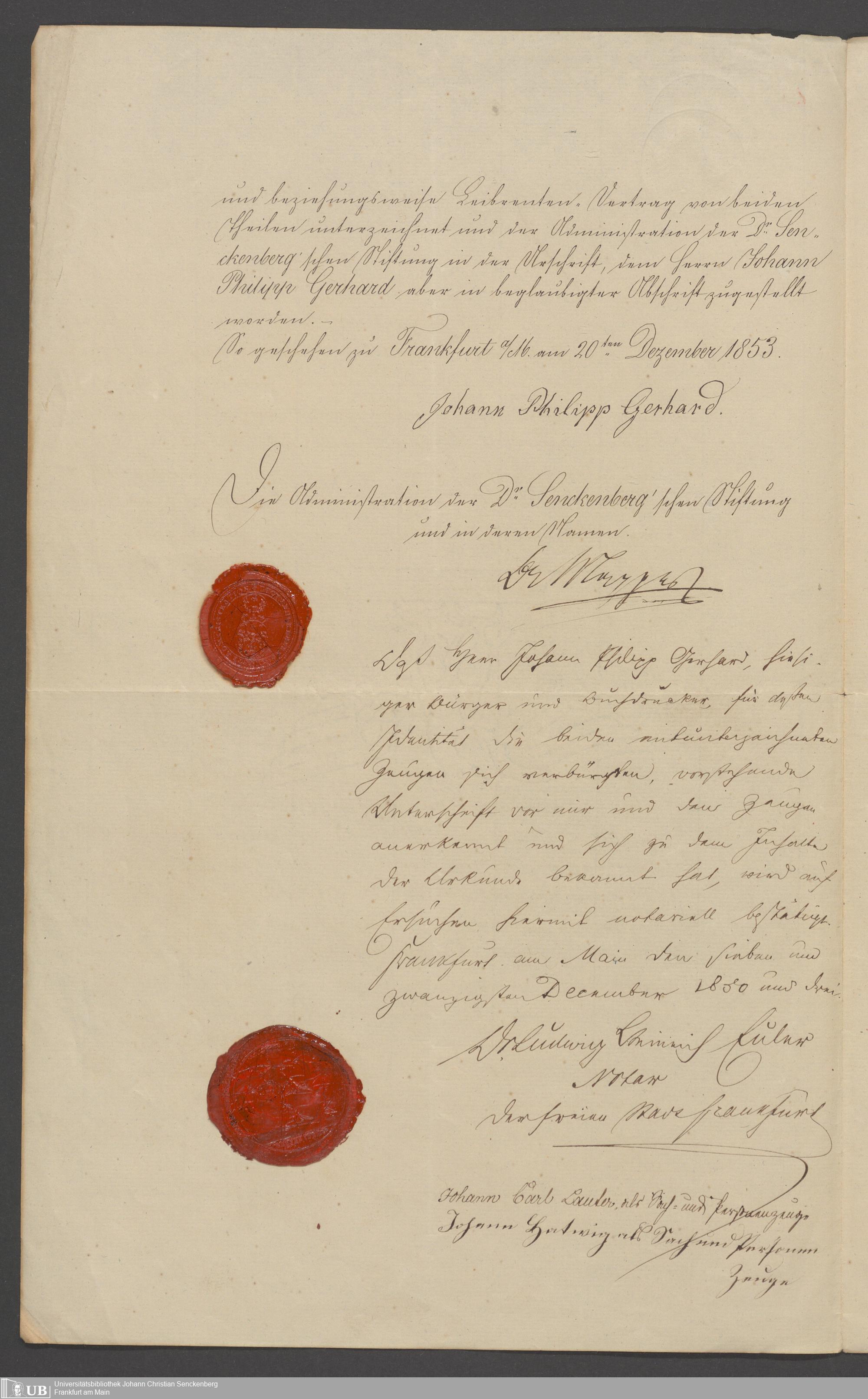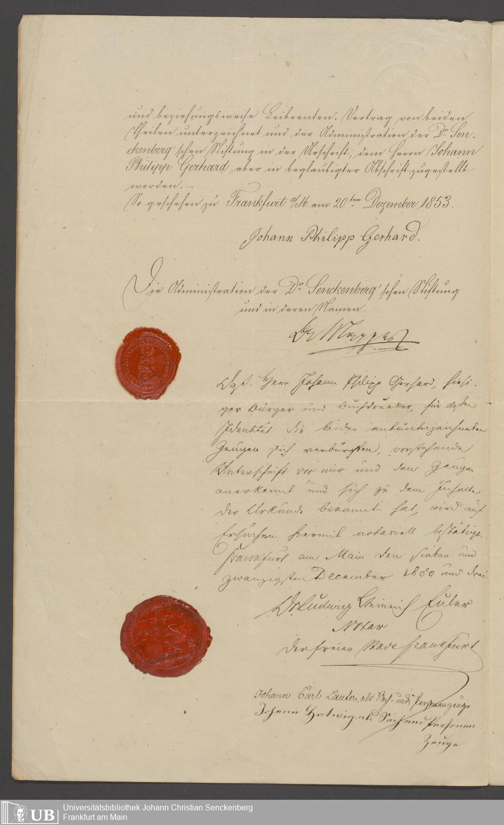 B 5 Dr. Senckenbergische Stiftung, 83 - Schenkung Johann Philipp Gerhard