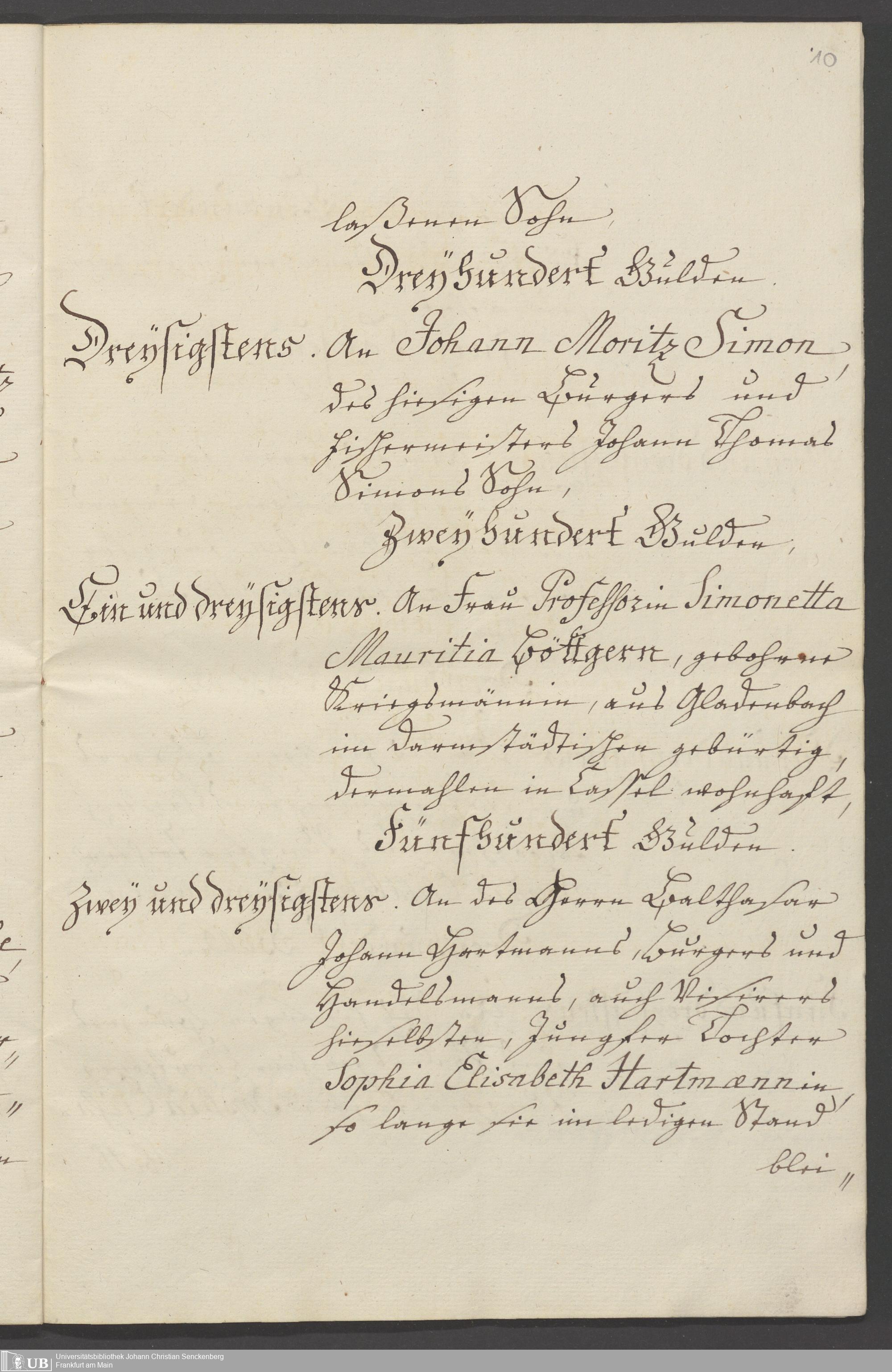 B 5 Dr. Senckenbergische Stiftung, 84 - Legat Simon Moritz Bethmann