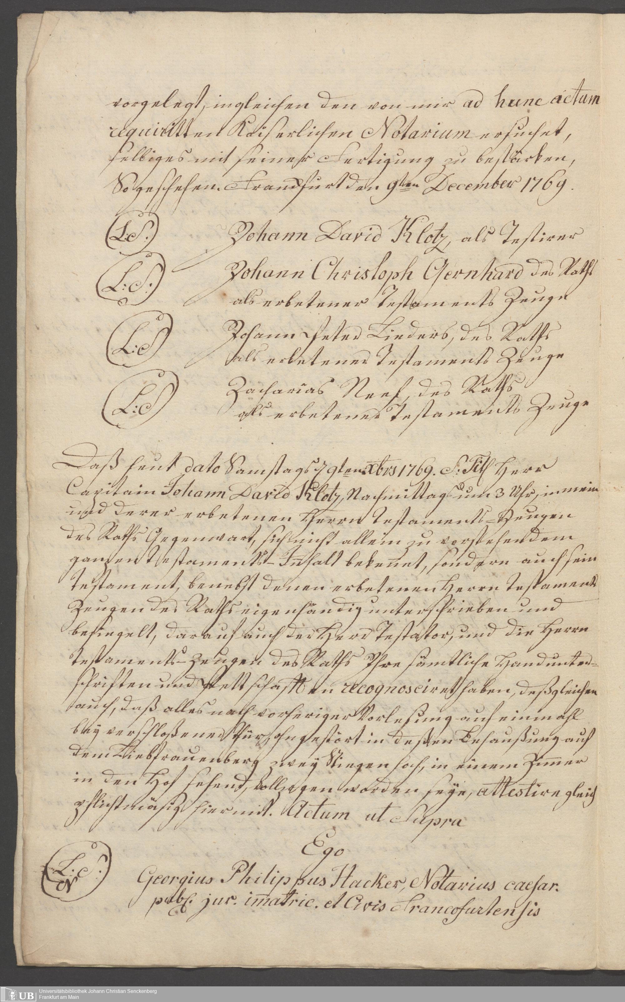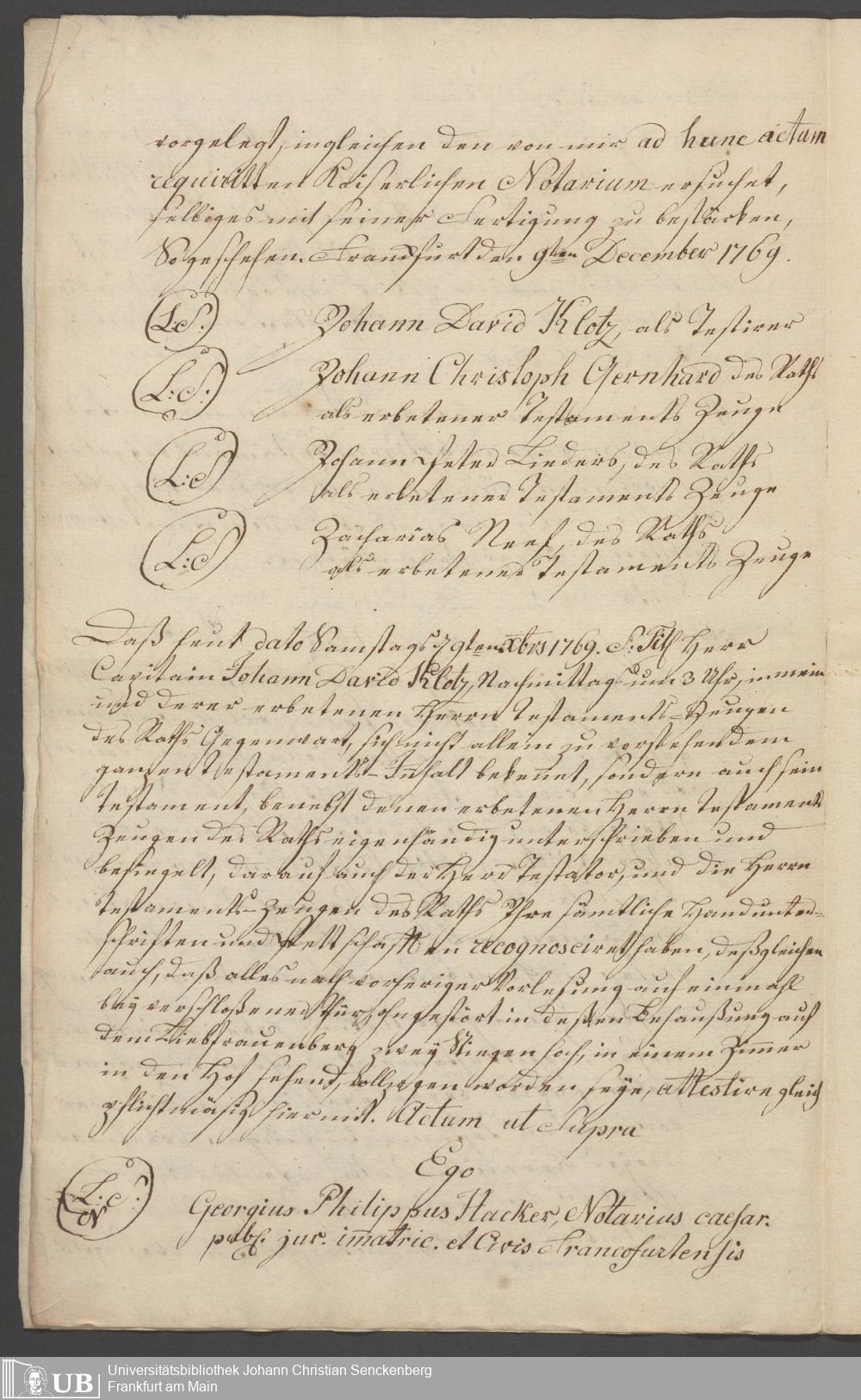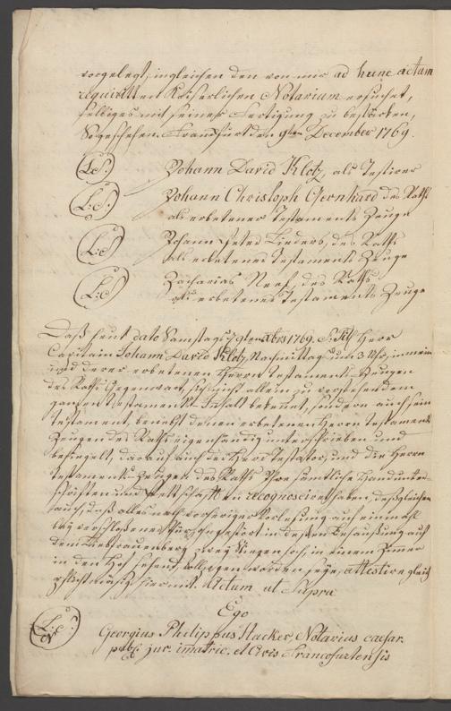 B 5 Dr. Senckenbergische Stiftung, 85 - Testament Johann David Klotz