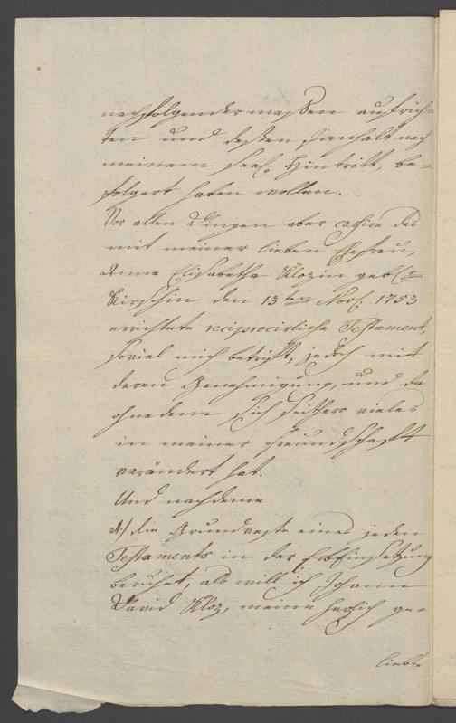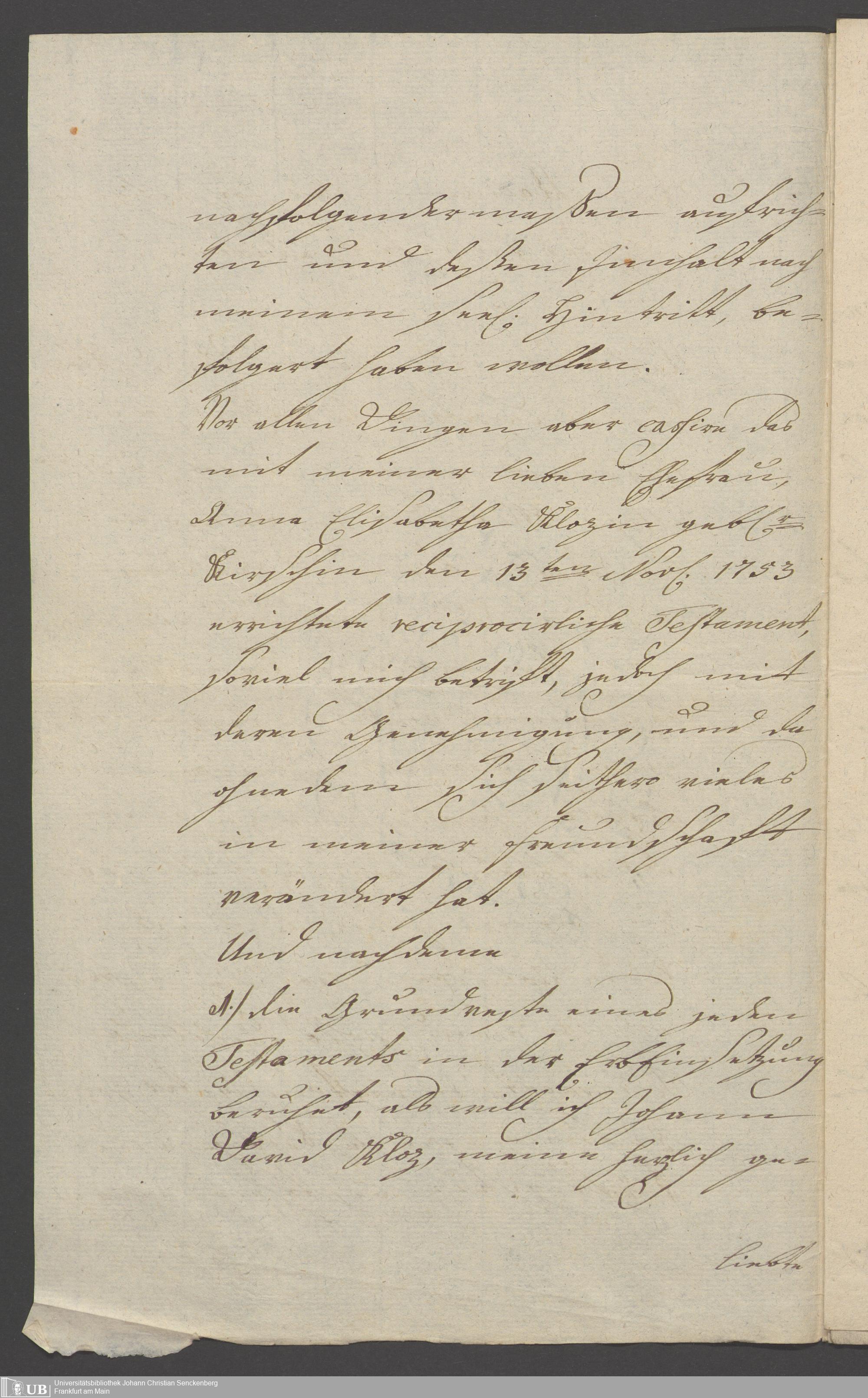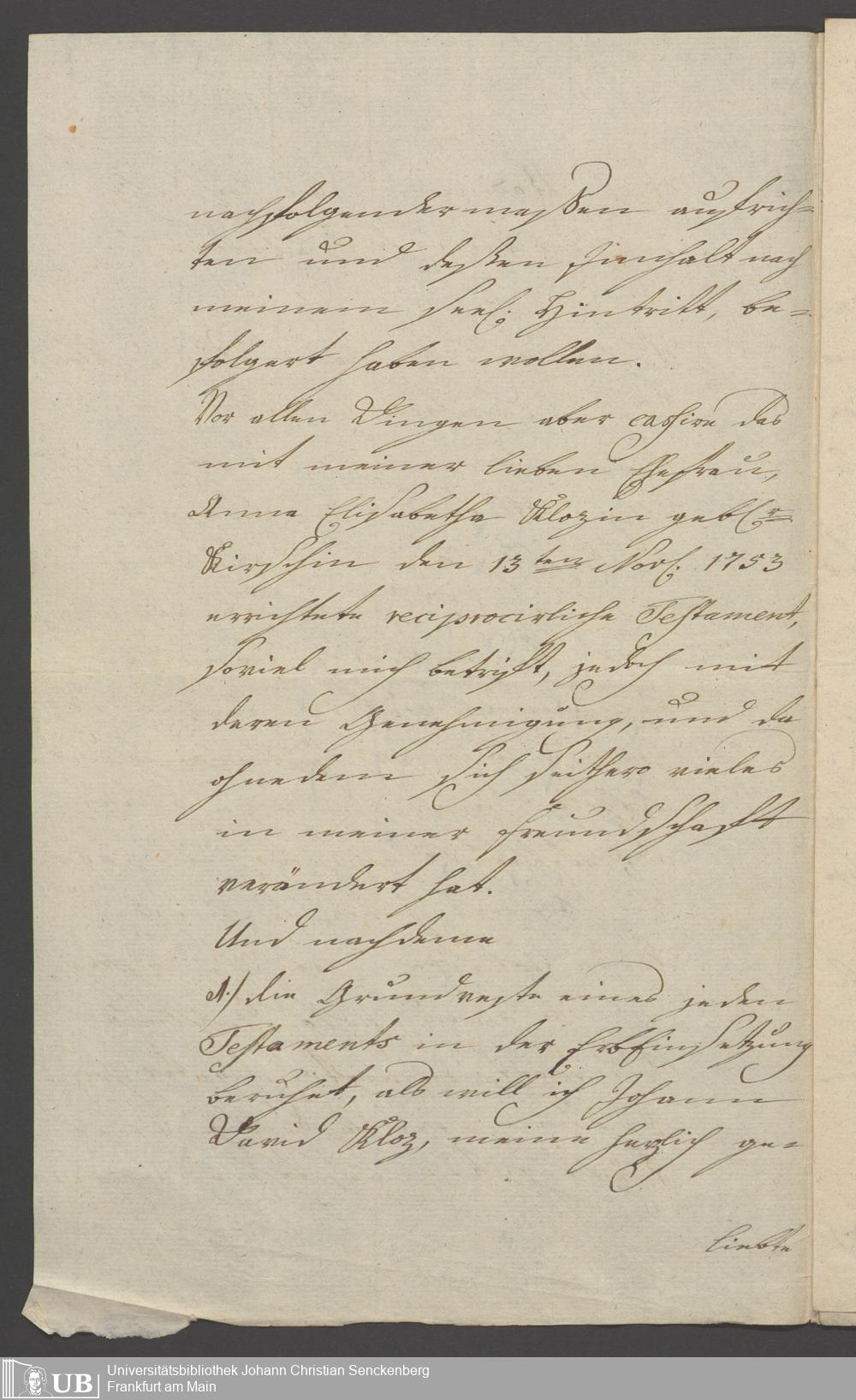 B 5 Dr. Senckenbergische Stiftung, 85 - Testament Johann David Klotz