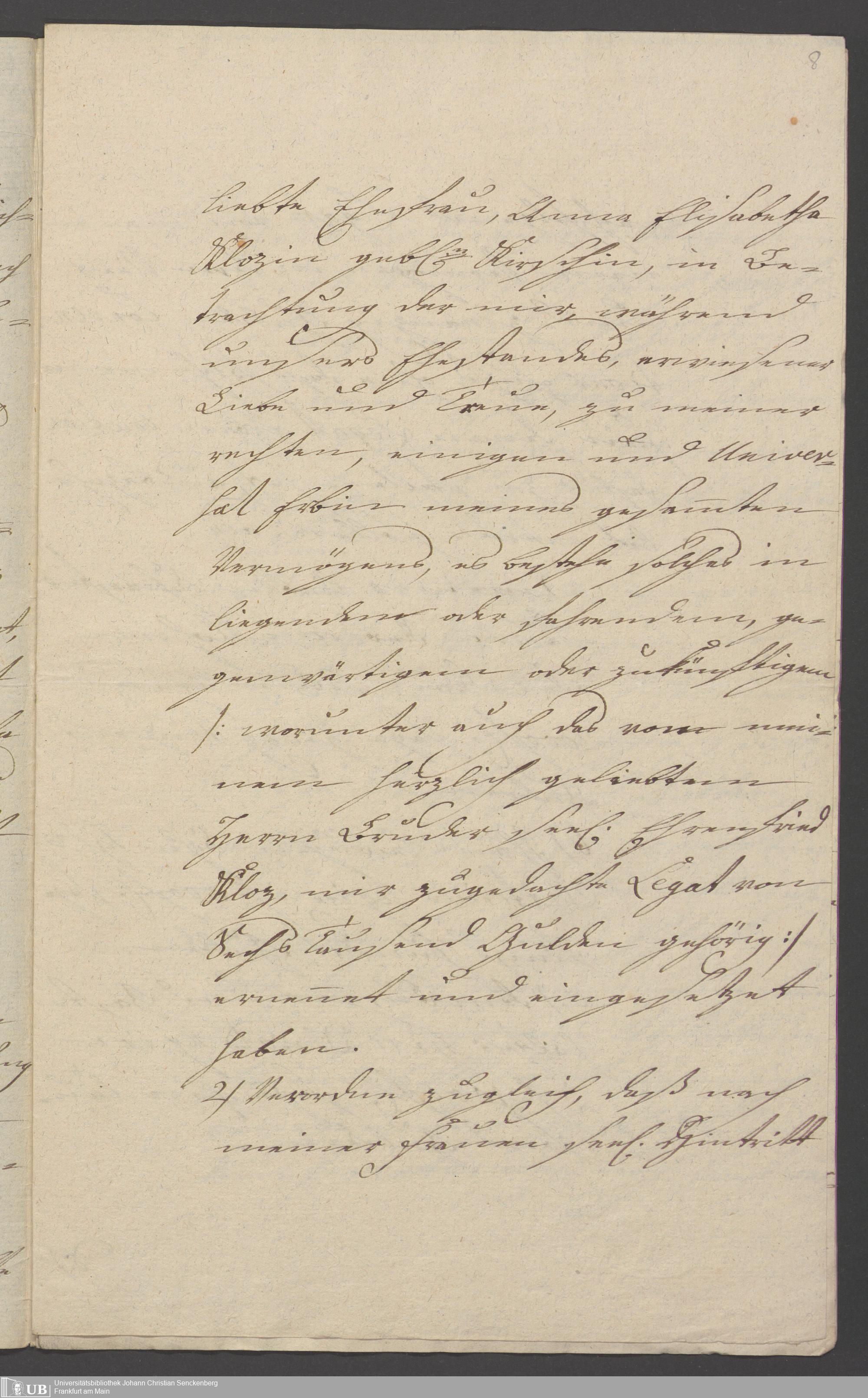 B 5 Dr. Senckenbergische Stiftung, 85 - Testament Johann David Klotz