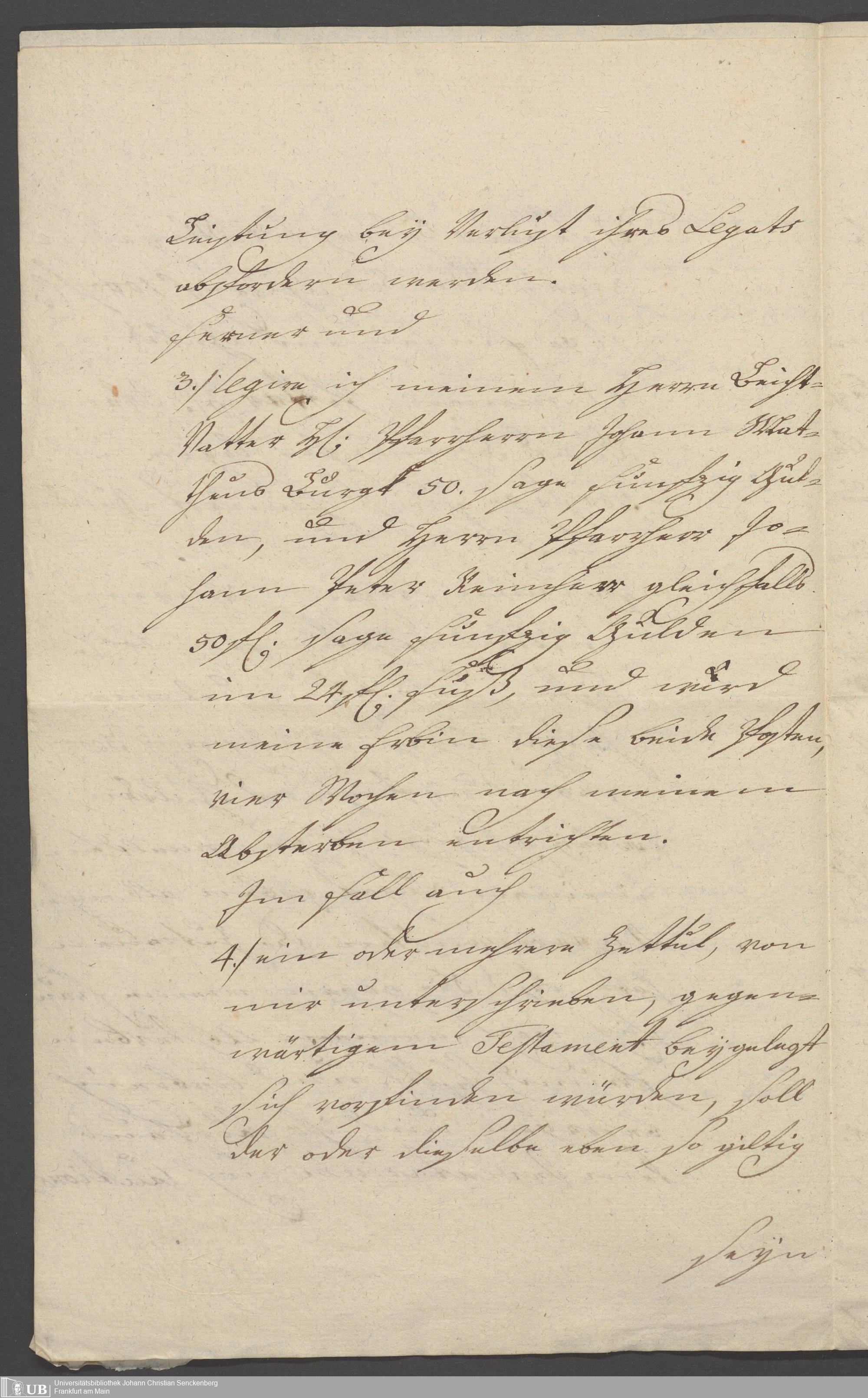 B 5 Dr. Senckenbergische Stiftung, 85 - Testament Johann David Klotz