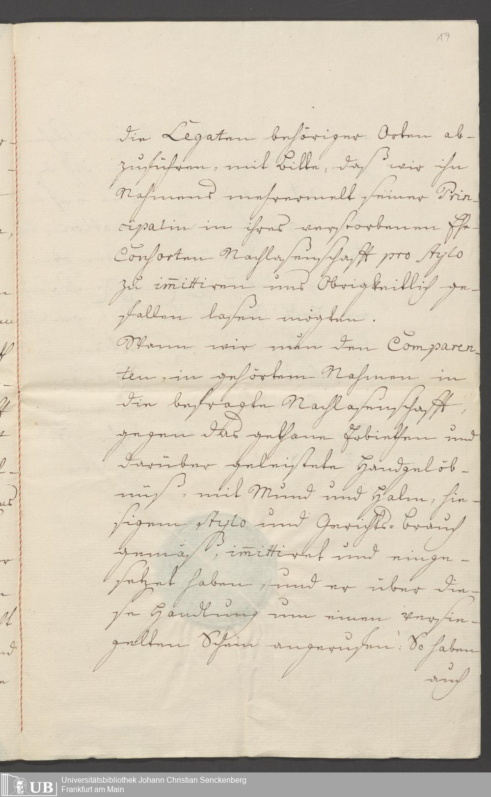 B 5 Dr. Senckenbergische Stiftung, 85 - Testament Johann David Klotz