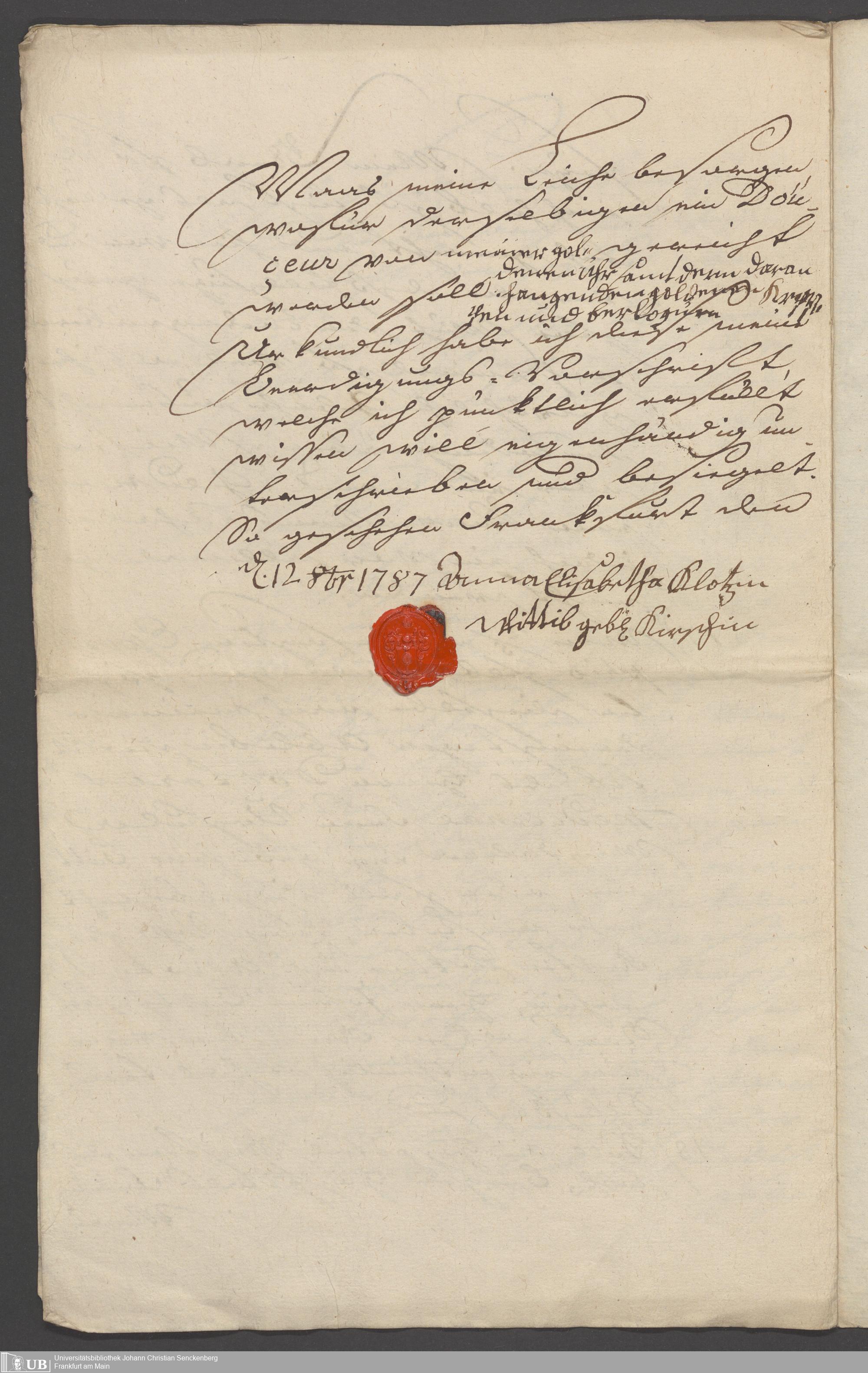 B 5 Dr. Senckenbergische Stiftung, 86 - Testament Anna Elisabeth Klotz, geb. Kirsch