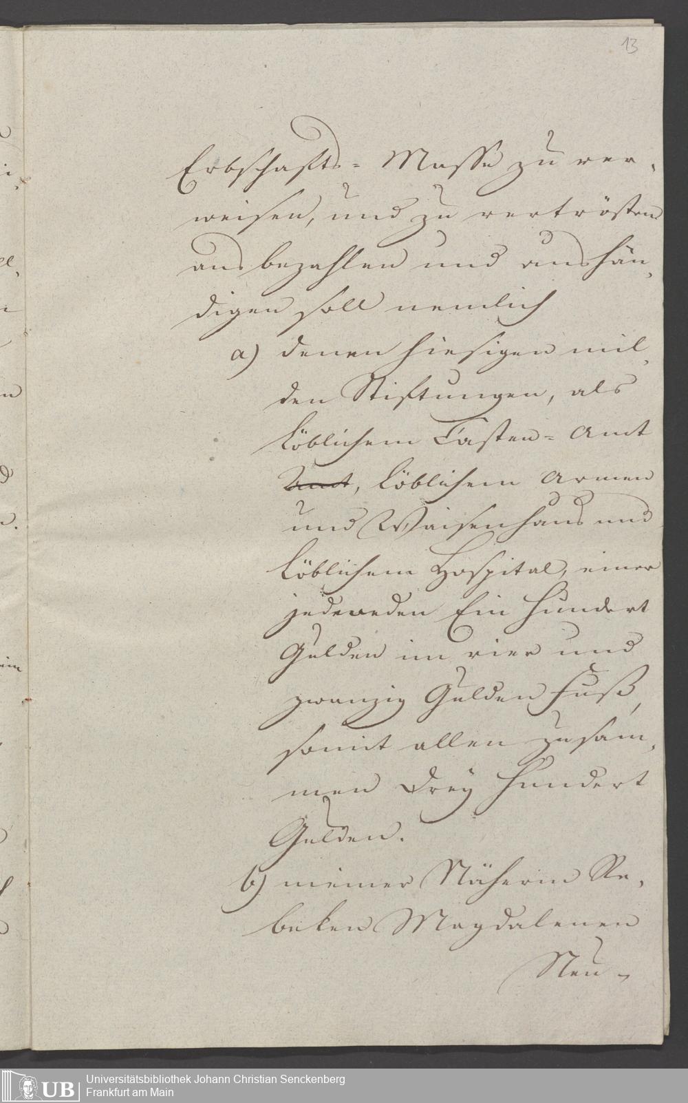 B 5 Dr. Senckenbergische Stiftung, 86 - Testament Anna Elisabeth Klotz, geb. Kirsch