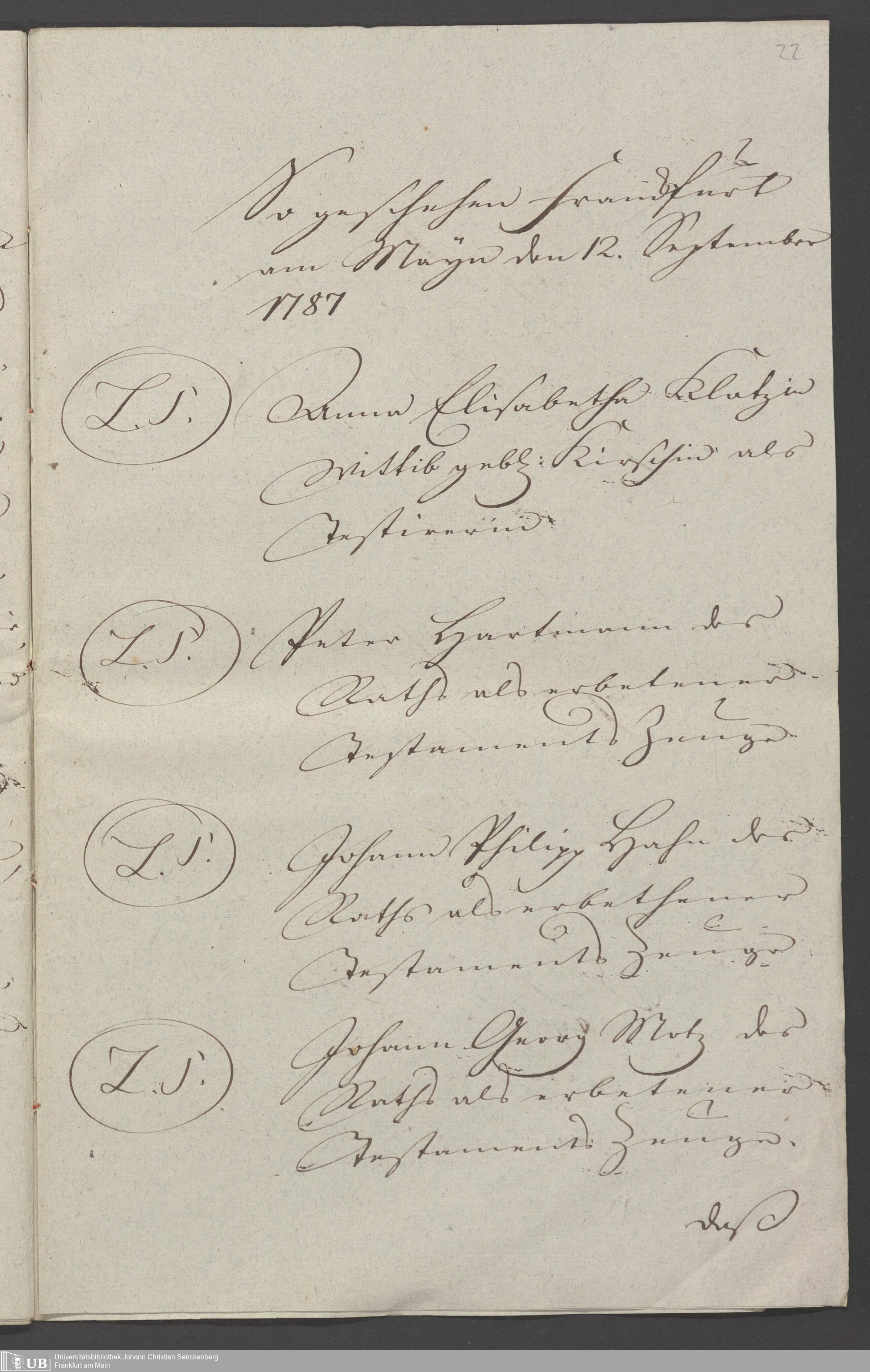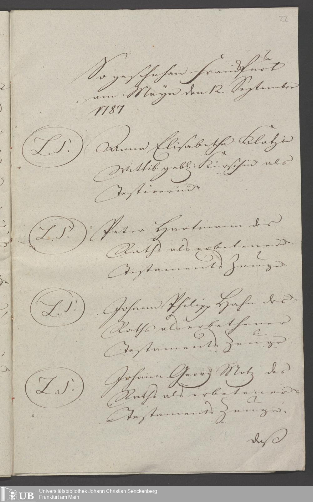 B 5 Dr. Senckenbergische Stiftung, 86 - Testament Anna Elisabeth Klotz, geb. Kirsch