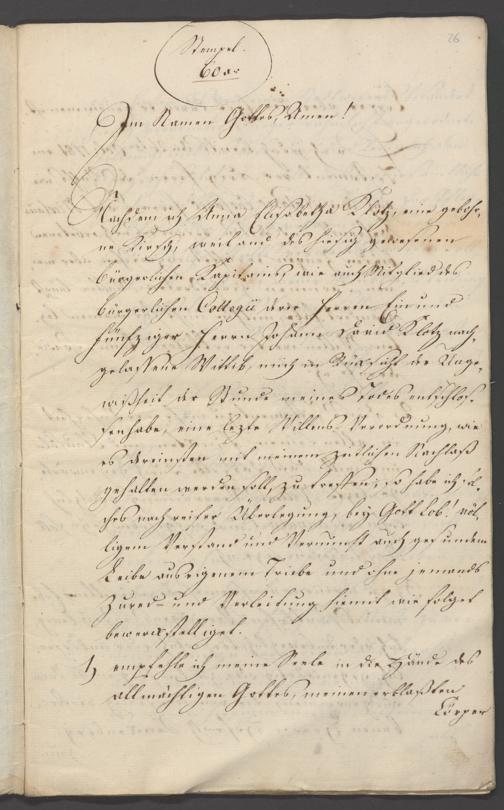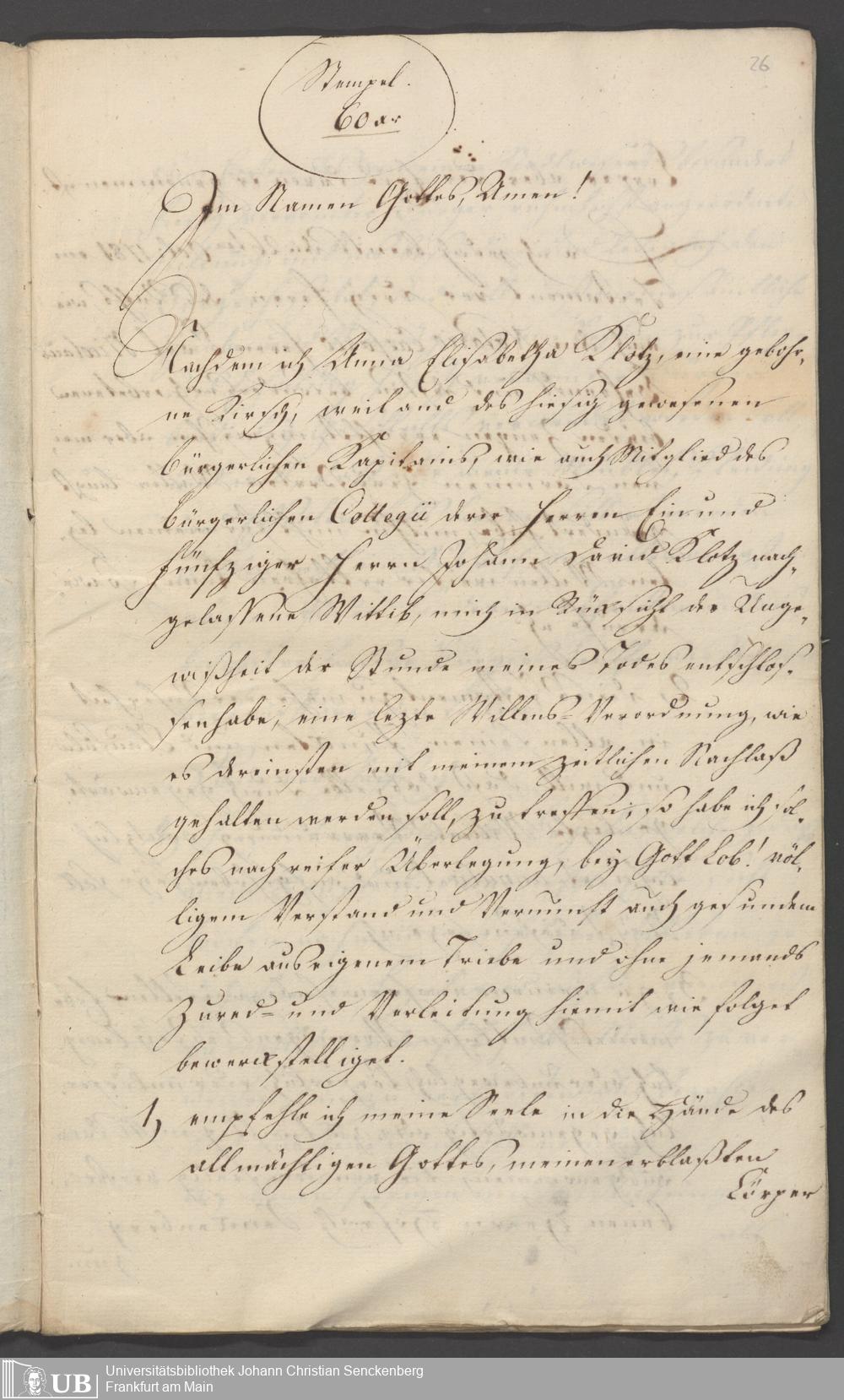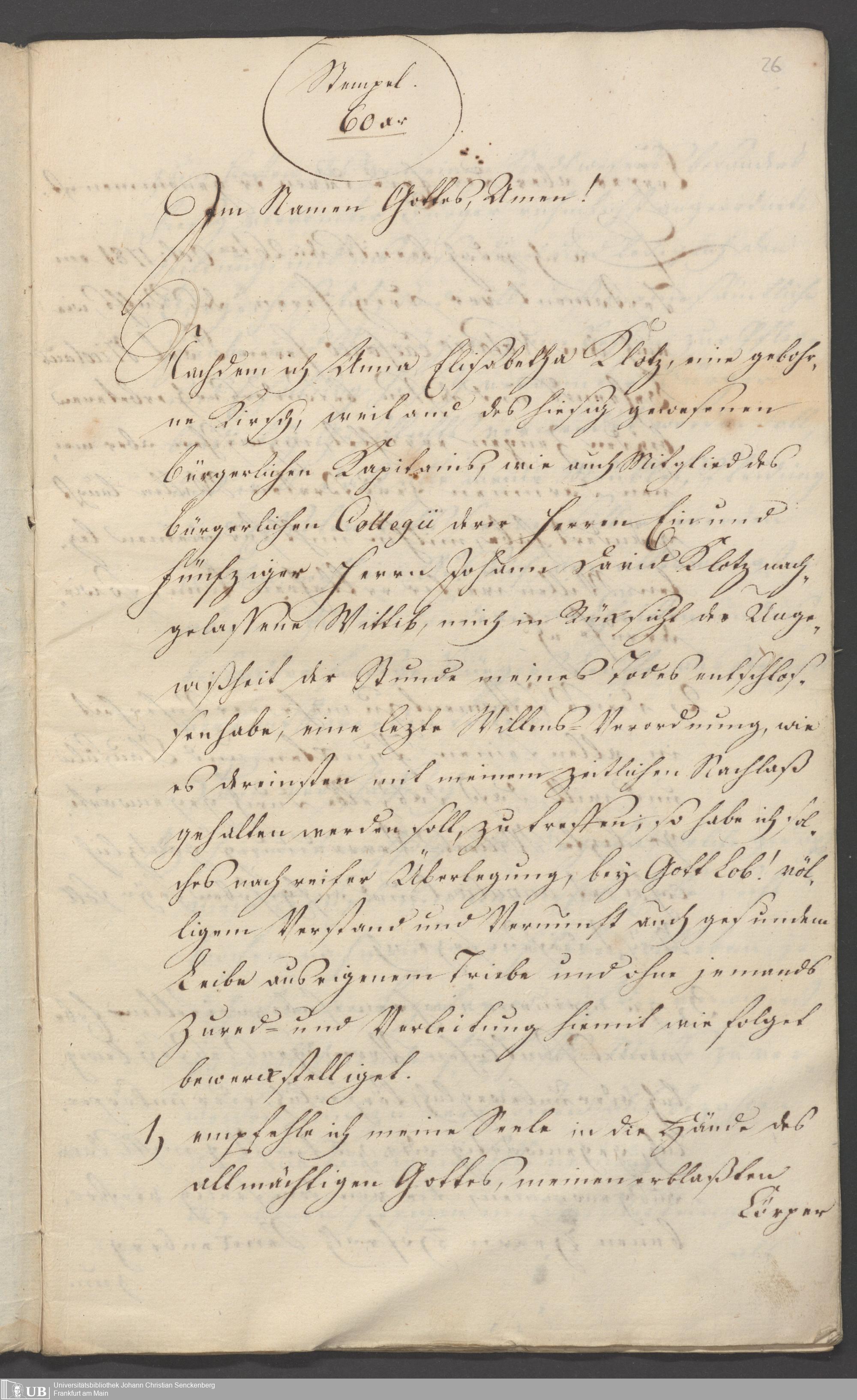 B 5 Dr. Senckenbergische Stiftung, 86 - Testament Anna Elisabeth Klotz, geb. Kirsch