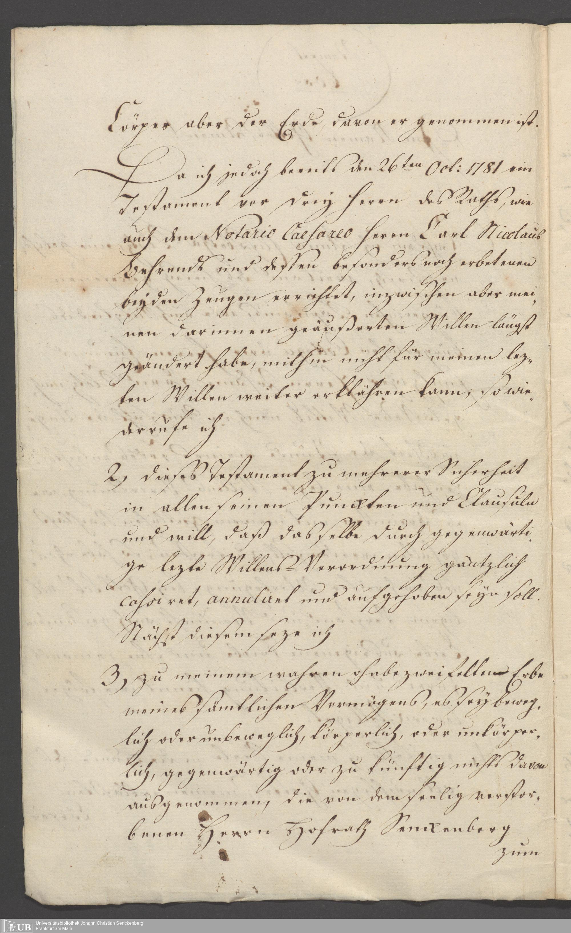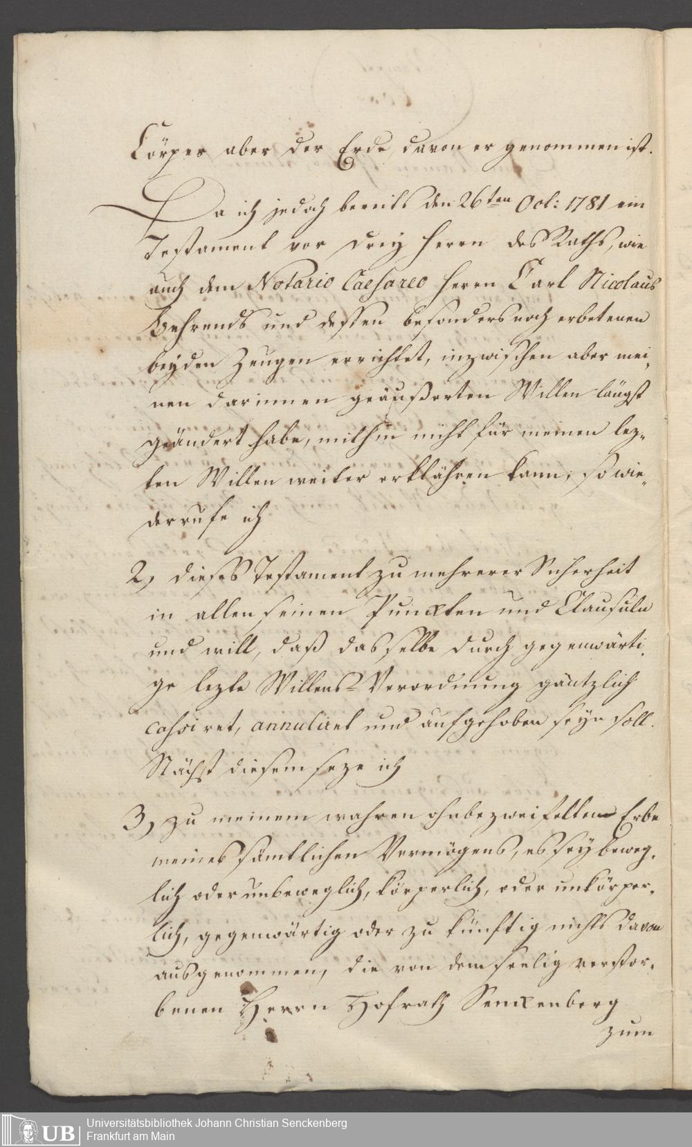 B 5 Dr. Senckenbergische Stiftung, 86 - Testament Anna Elisabeth Klotz, geb. Kirsch