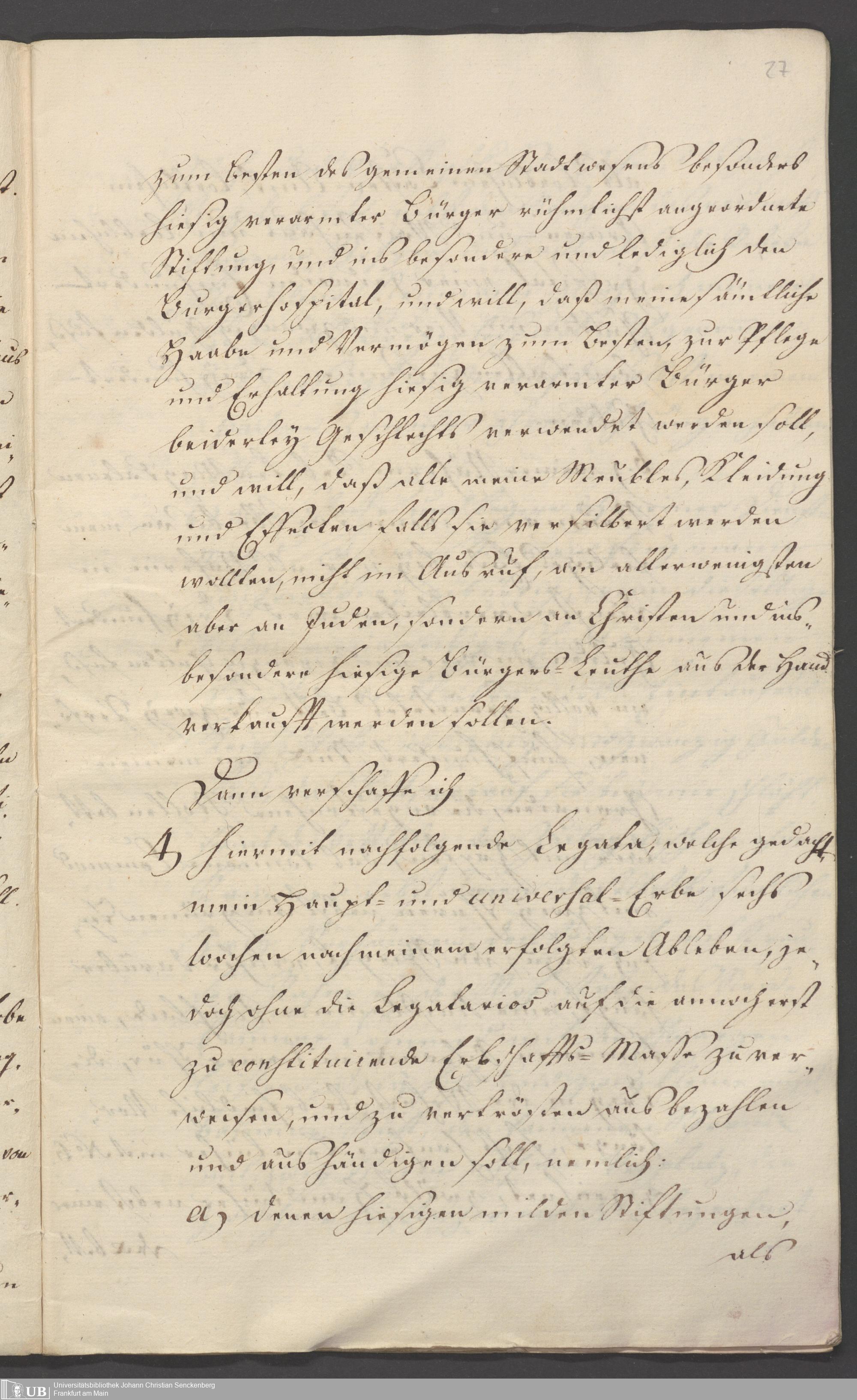 B 5 Dr. Senckenbergische Stiftung, 86 - Testament Anna Elisabeth Klotz, geb. Kirsch