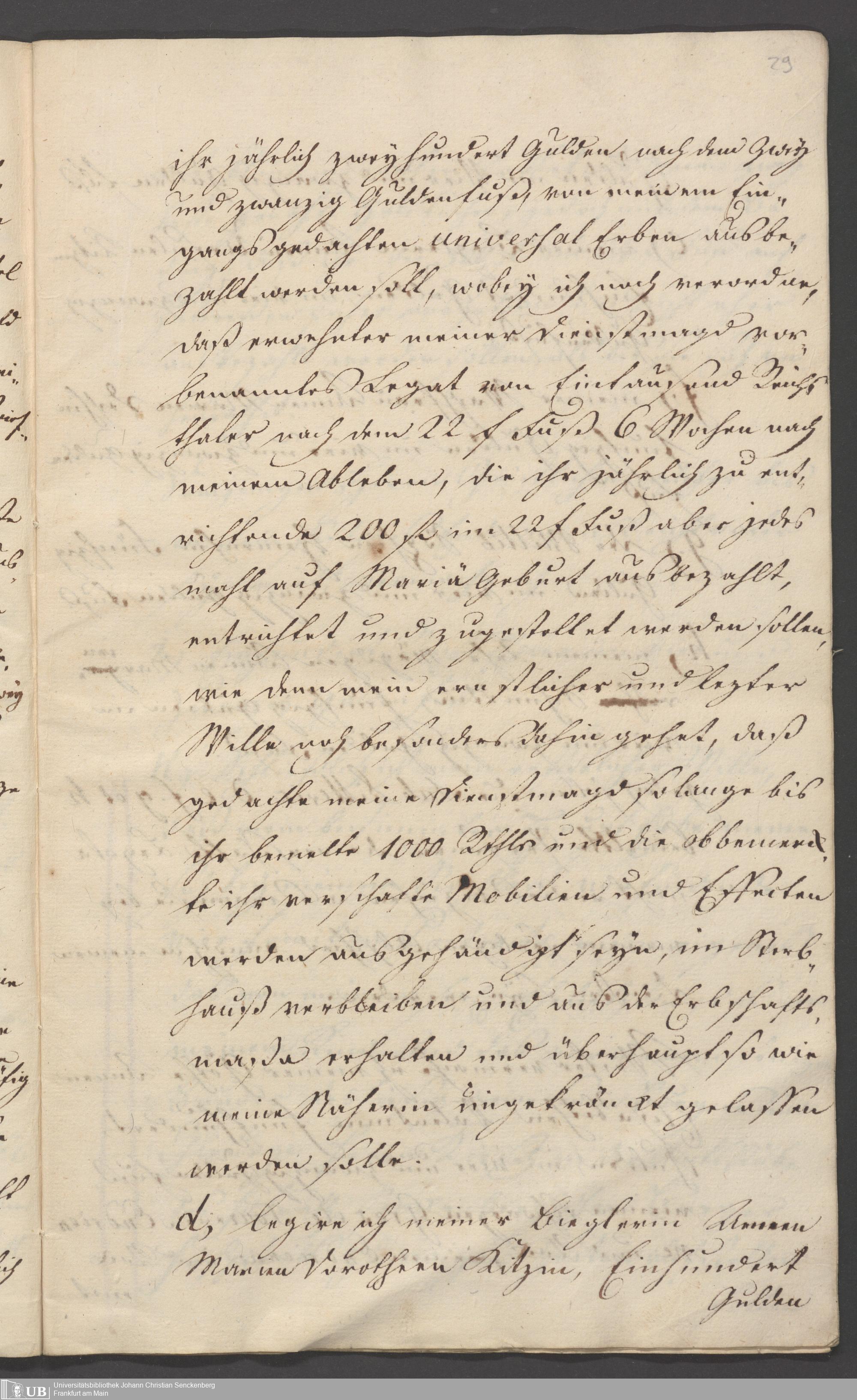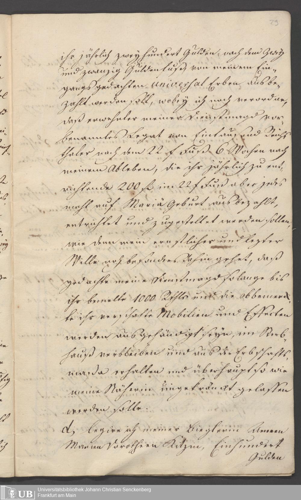B 5 Dr. Senckenbergische Stiftung, 86 - Testament Anna Elisabeth Klotz, geb. Kirsch