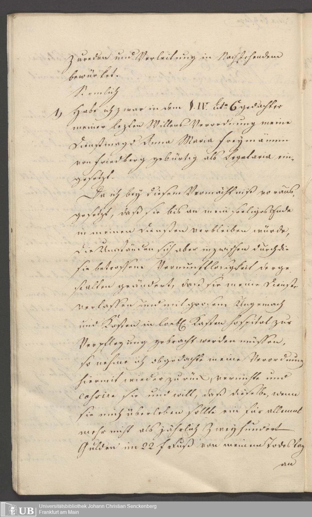 B 5 Dr. Senckenbergische Stiftung, 86 - Testament Anna Elisabeth Klotz, geb. Kirsch