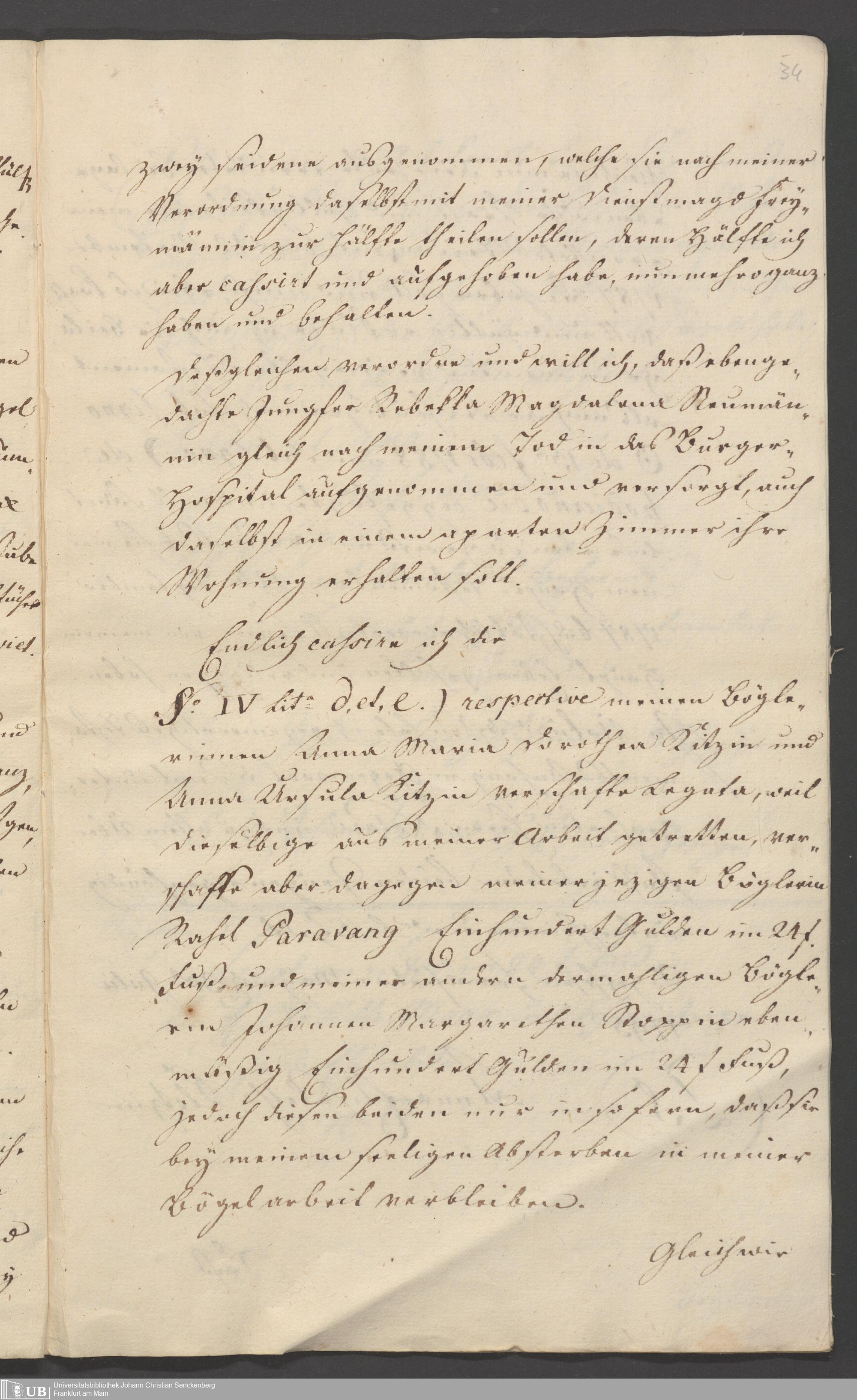 B 5 Dr. Senckenbergische Stiftung, 86 - Testament Anna Elisabeth Klotz, geb. Kirsch