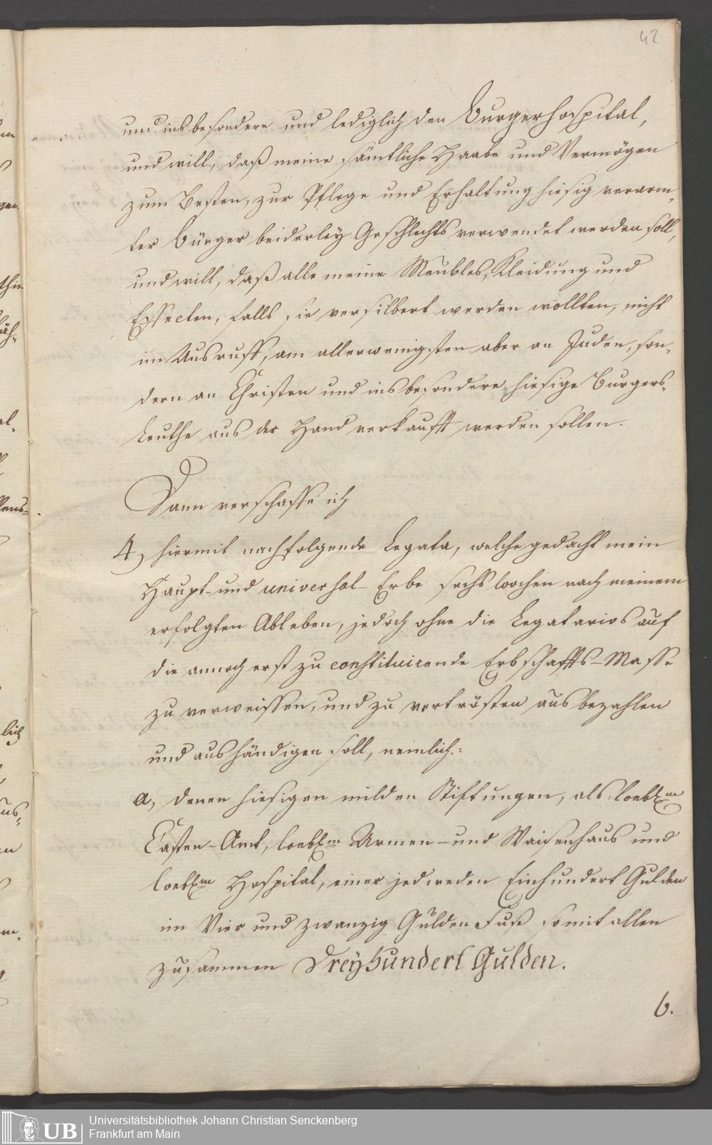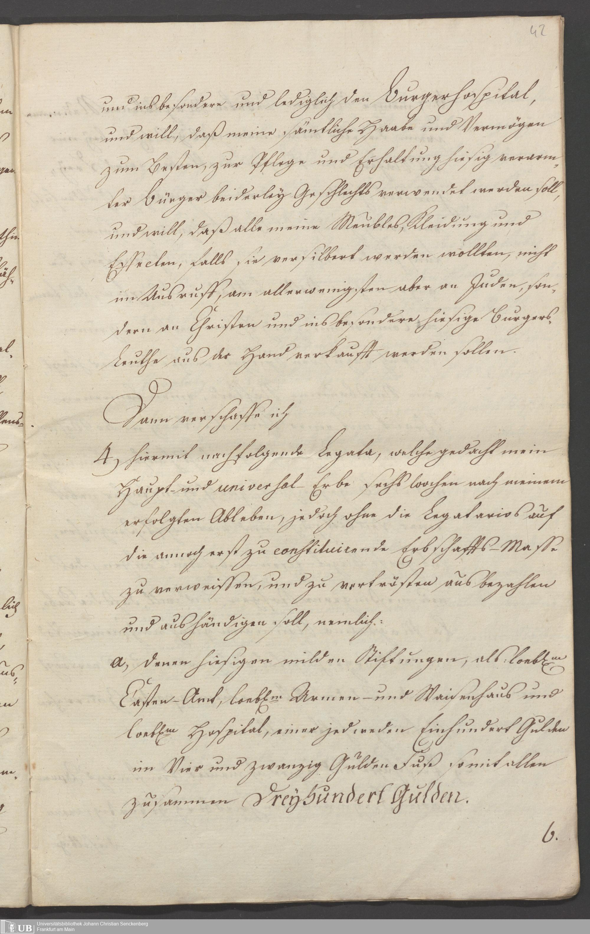 B 5 Dr. Senckenbergische Stiftung, 86 - Testament Anna Elisabeth Klotz, geb. Kirsch