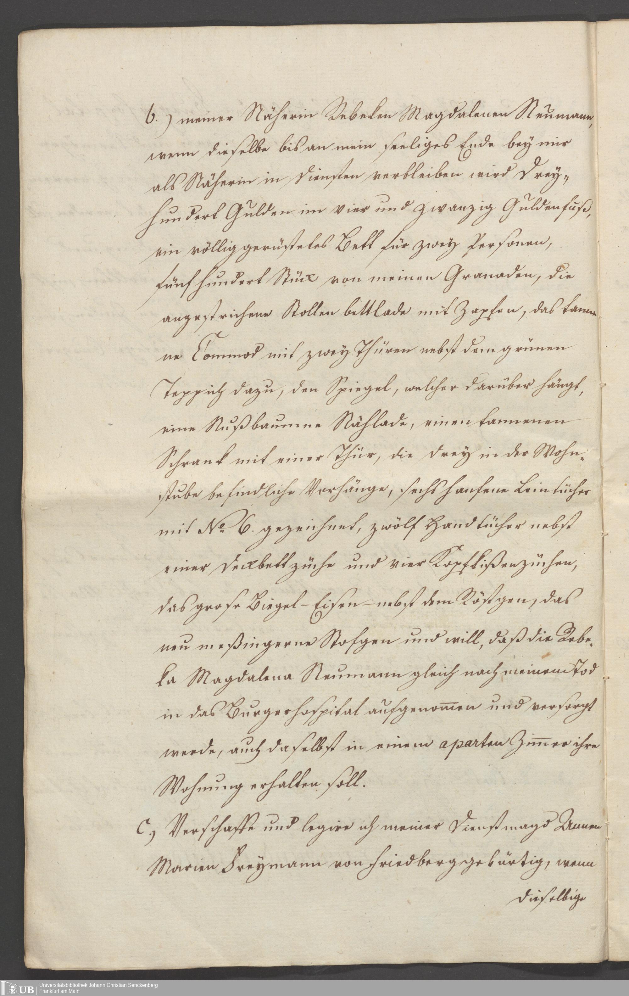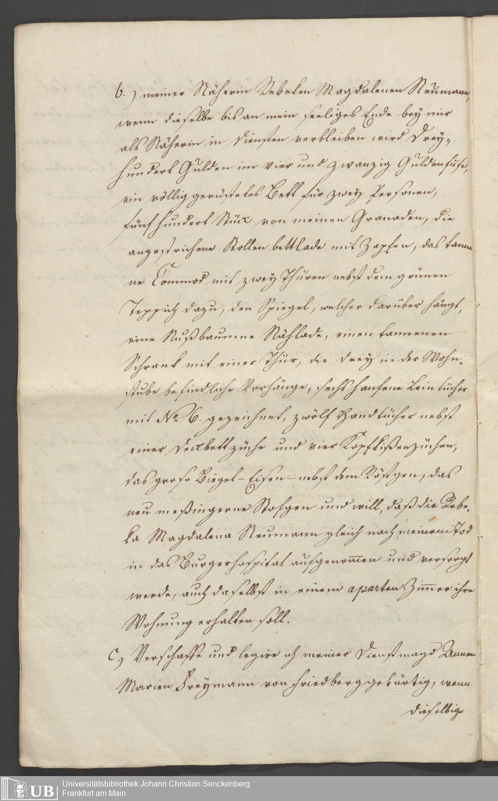 B 5 Dr. Senckenbergische Stiftung, 86 - Testament Anna Elisabeth Klotz, geb. Kirsch