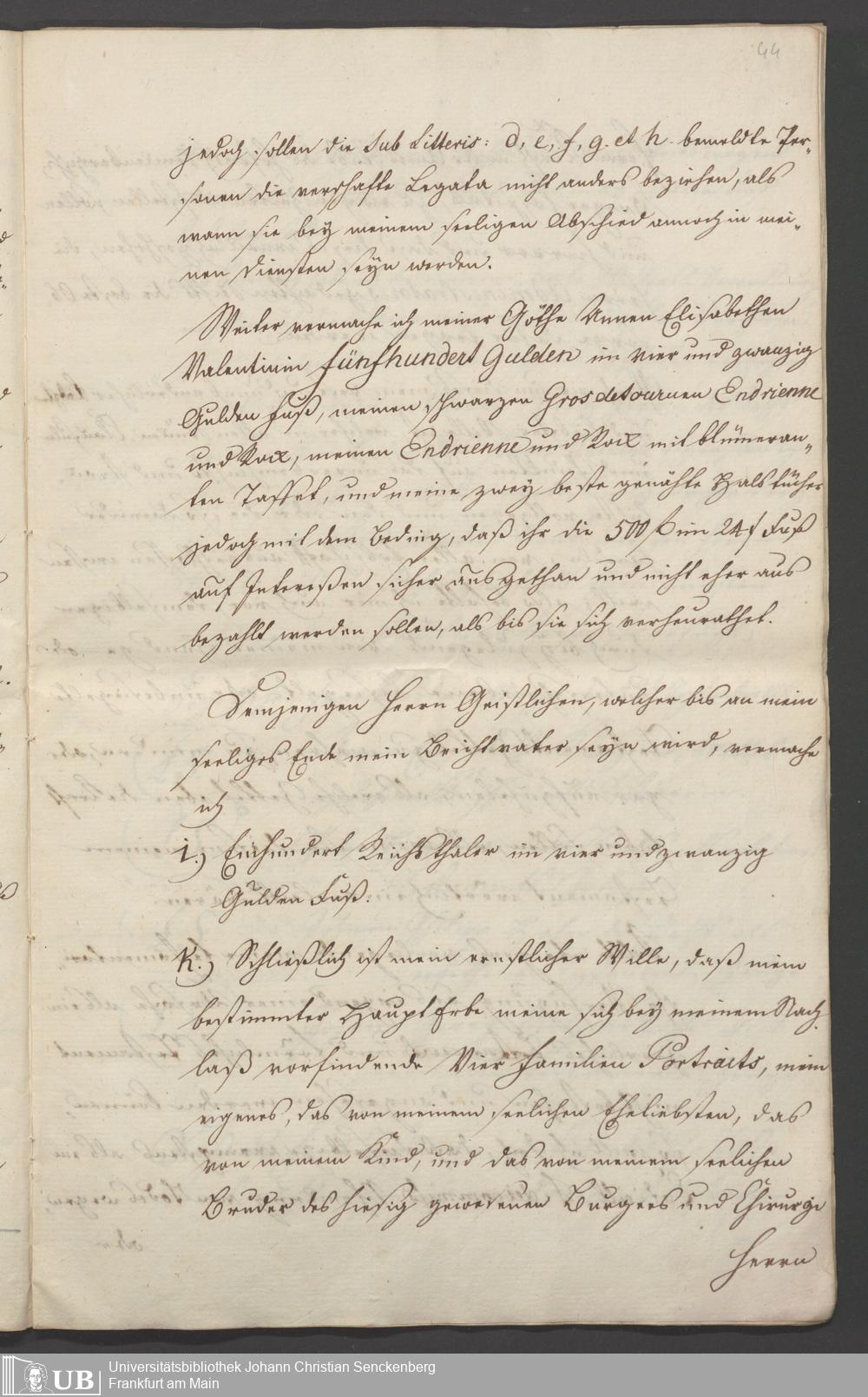 B 5 Dr. Senckenbergische Stiftung, 86 - Testament Anna Elisabeth Klotz, geb. Kirsch