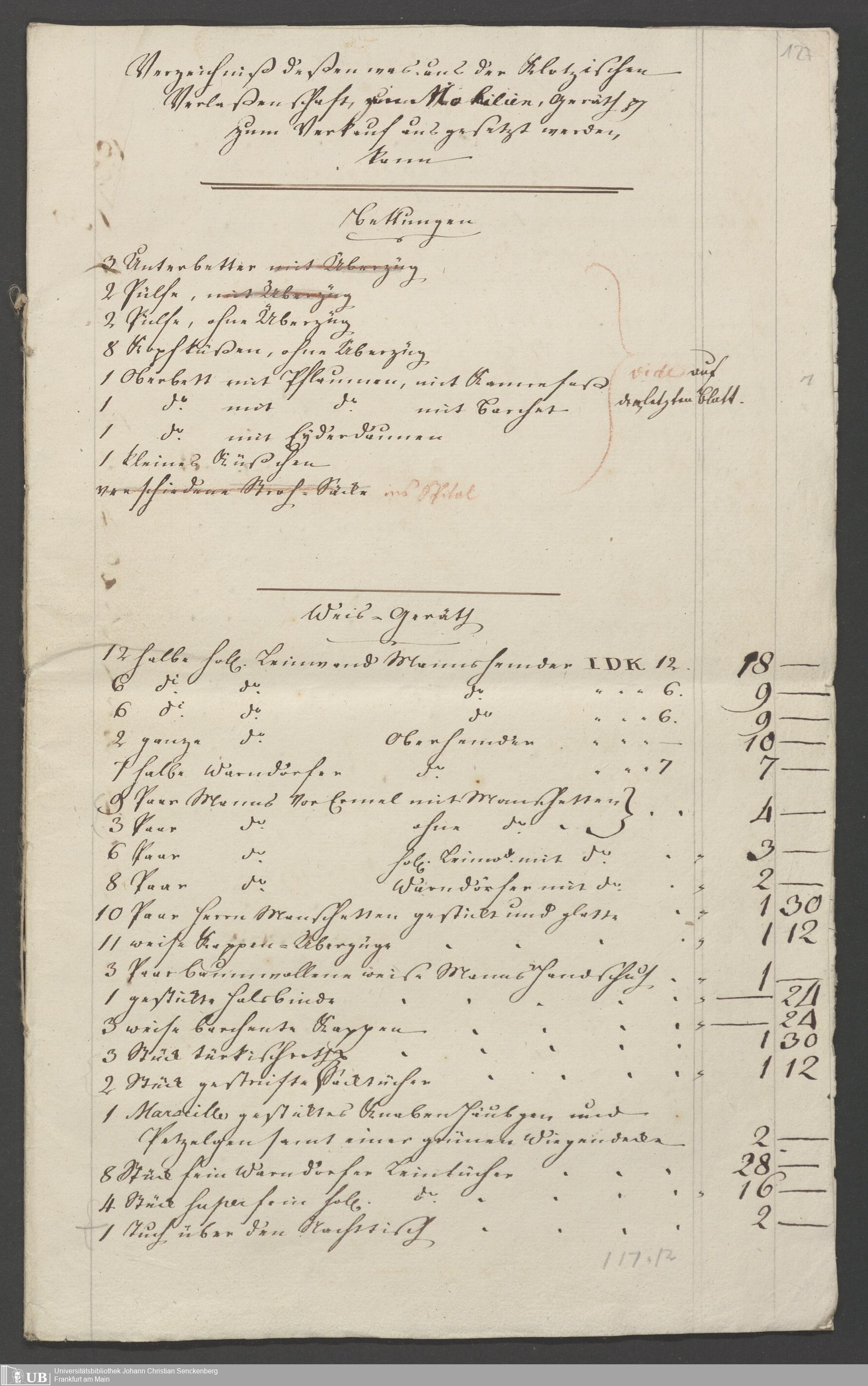 B 5 Dr. Senckenbergische Stiftung, 86 - Testament Anna Elisabeth Klotz, geb. Kirsch