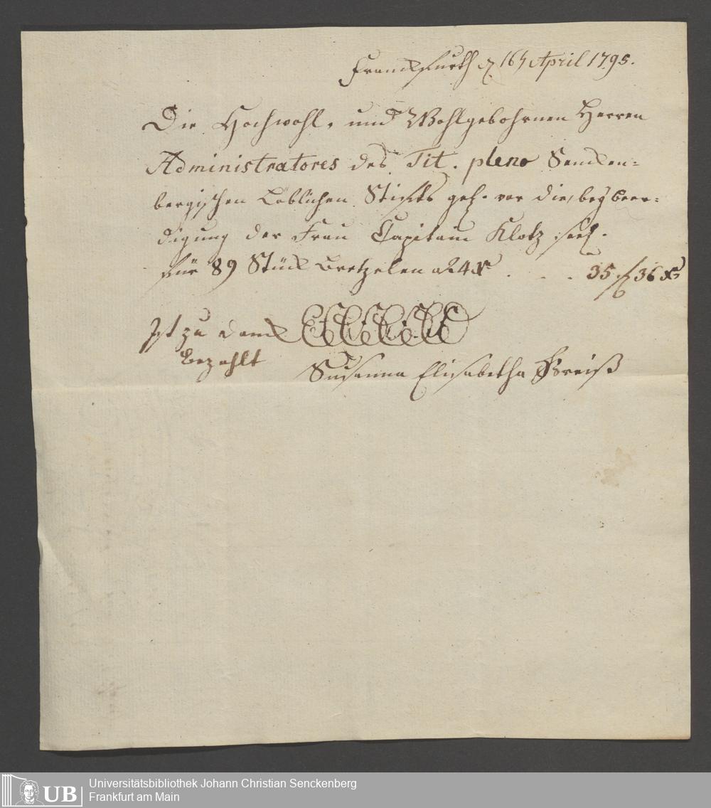 B 5 Dr. Senckenbergische Stiftung, 87 - zum Testament Anna Elisabeth Klotz
