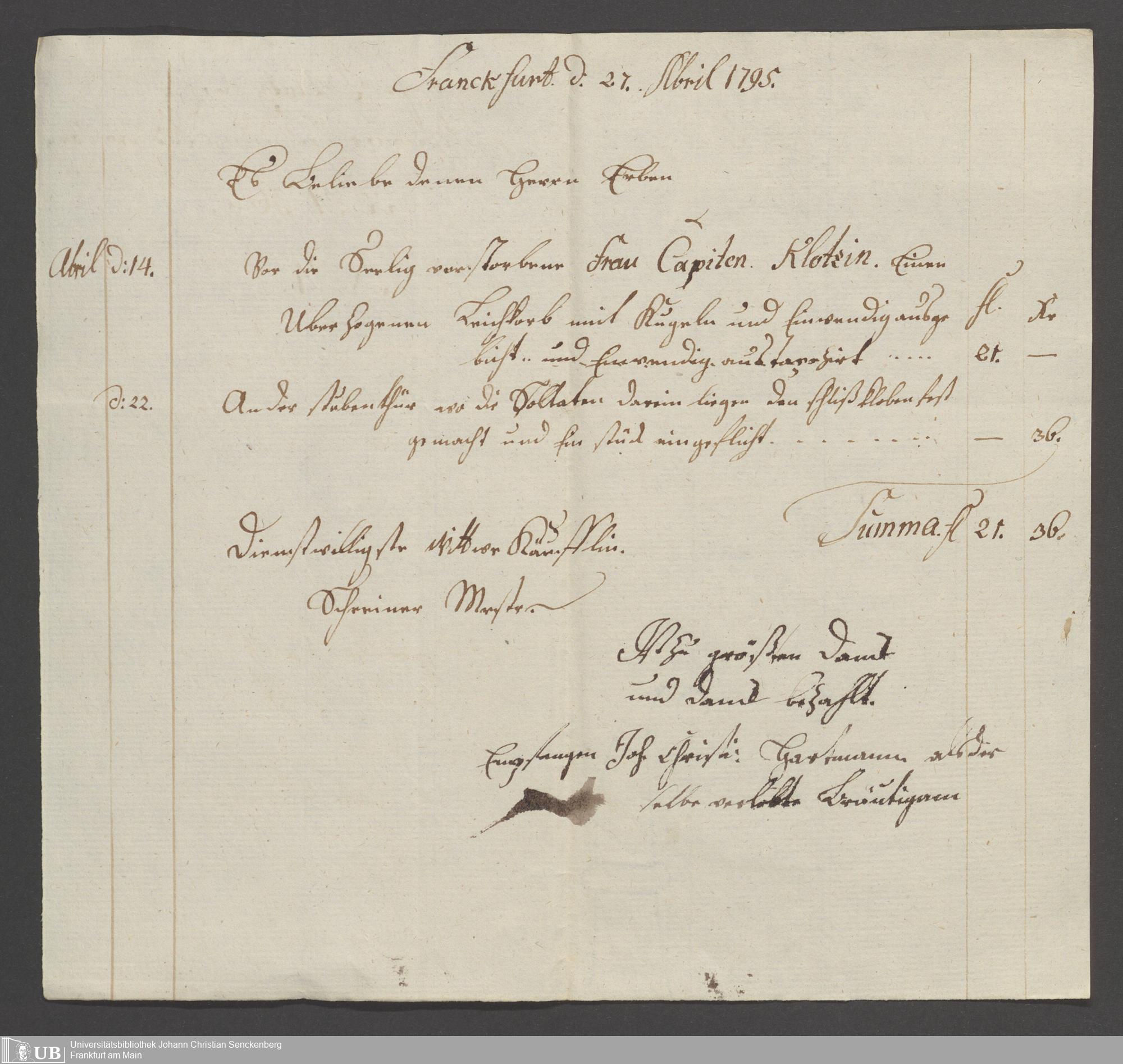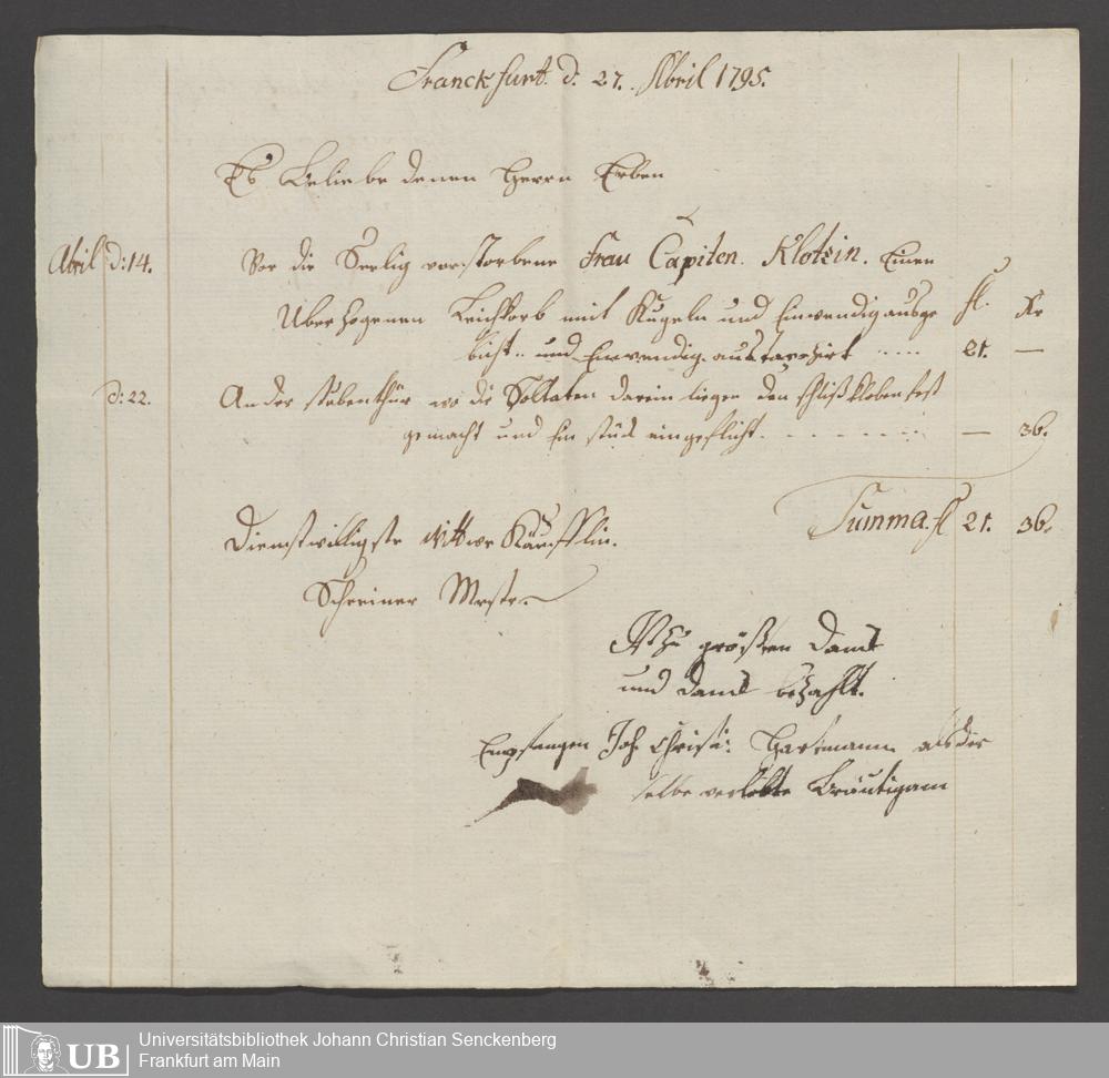 B 5 Dr. Senckenbergische Stiftung, 87 - zum Testament Anna Elisabeth Klotz