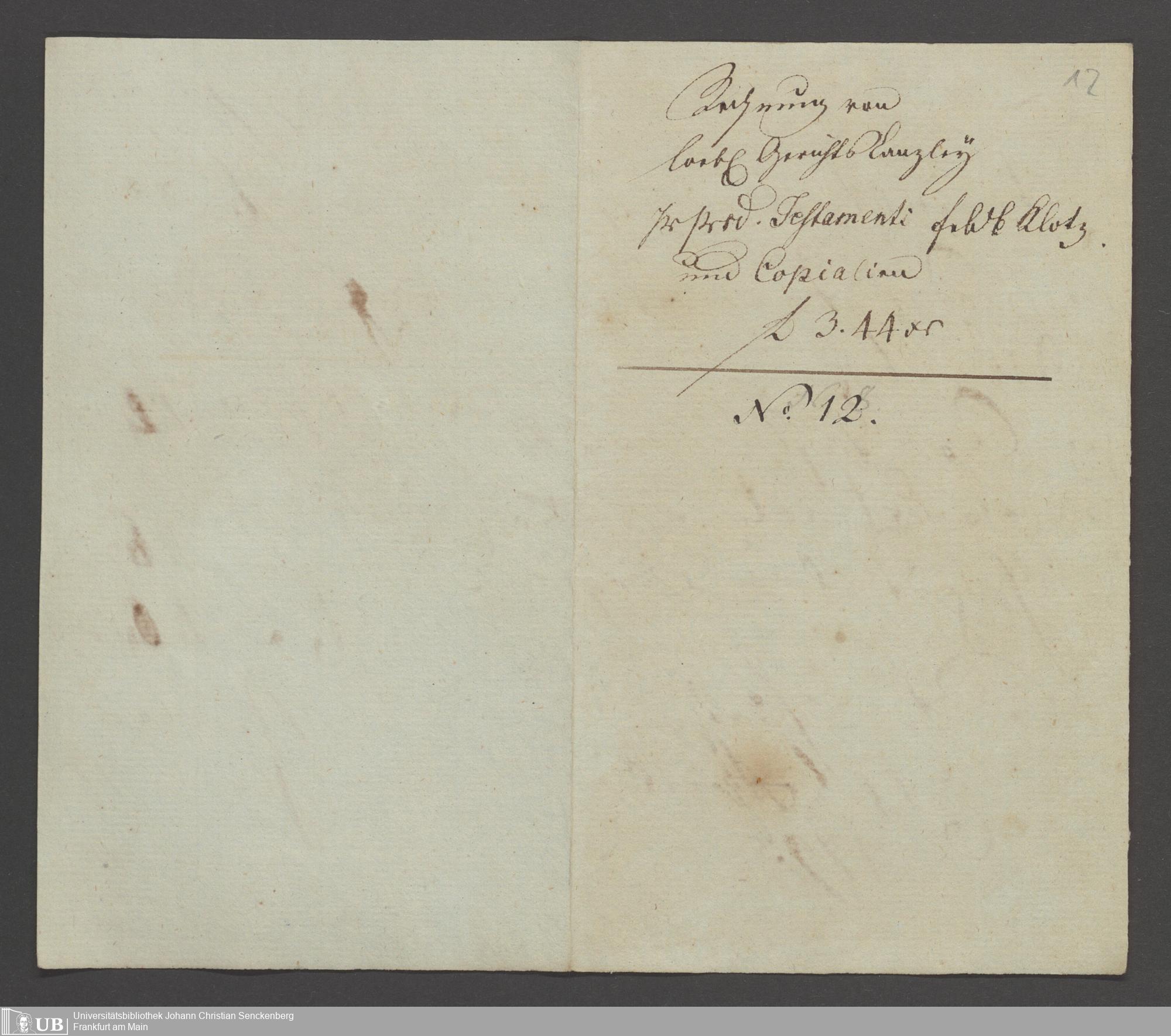 B 5 Dr. Senckenbergische Stiftung, 87 - zum Testament Anna Elisabeth Klotz