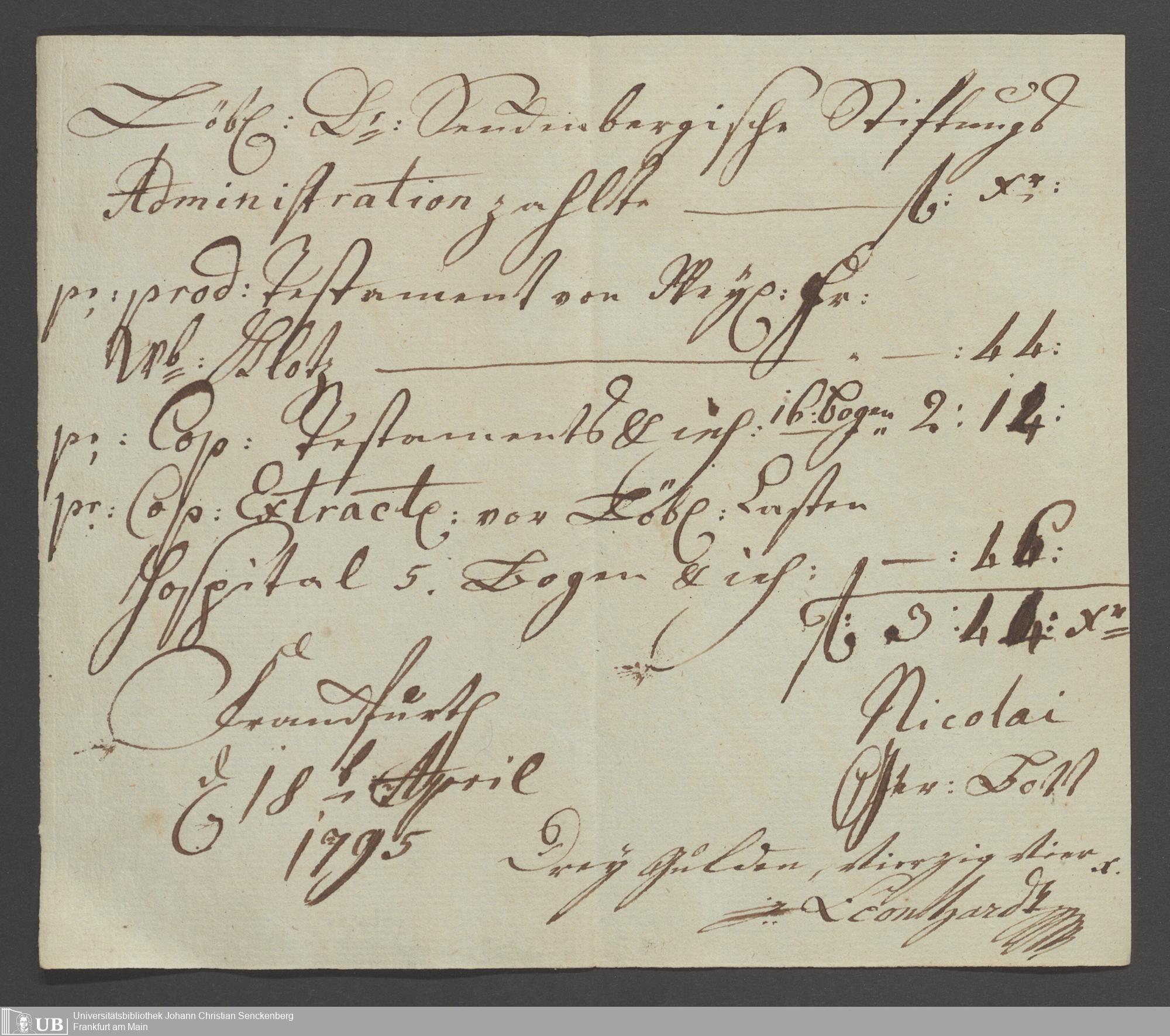 B 5 Dr. Senckenbergische Stiftung, 87 - zum Testament Anna Elisabeth Klotz