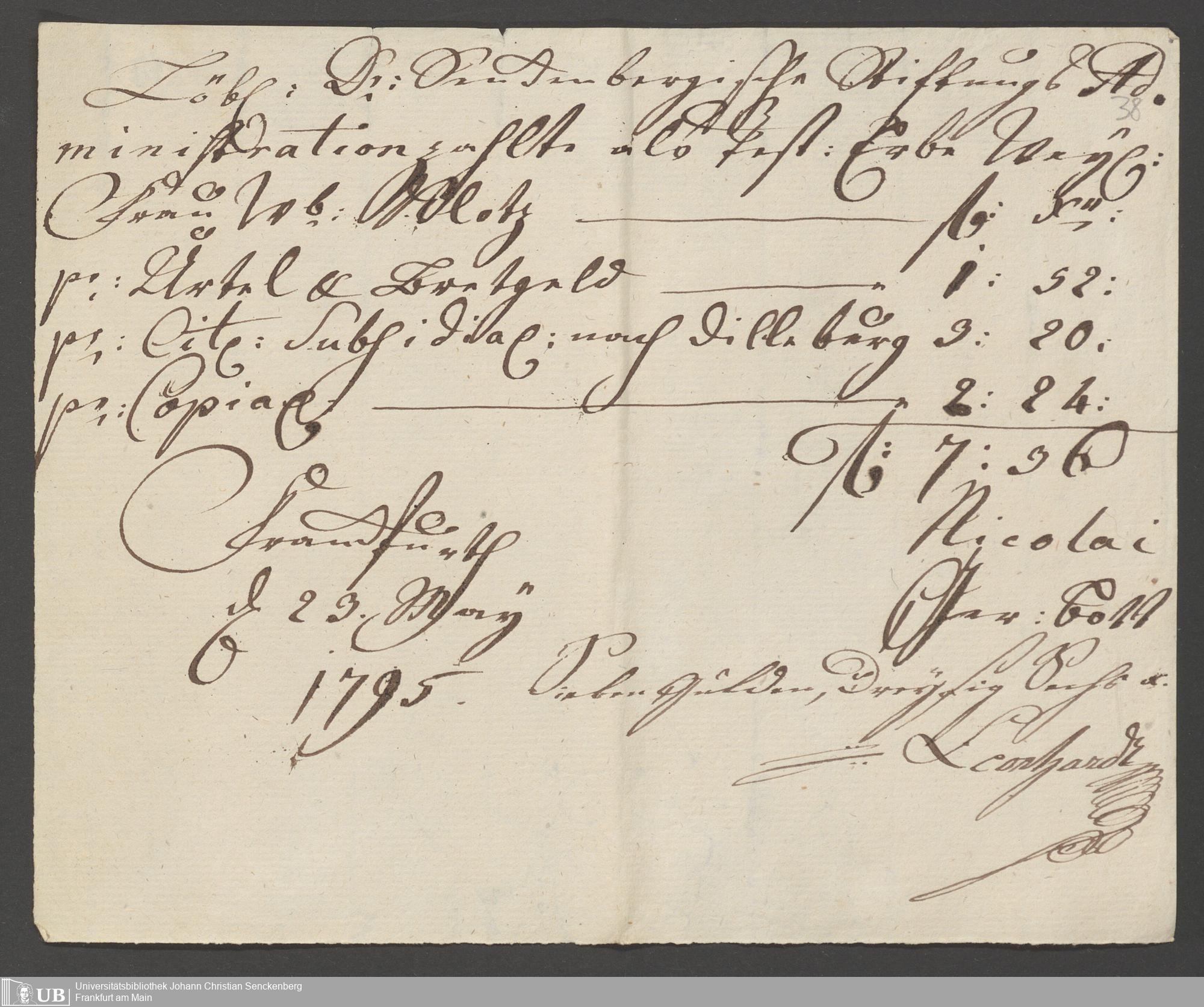 B 5 Dr. Senckenbergische Stiftung, 87 - zum Testament Anna Elisabeth Klotz