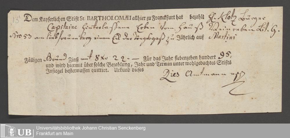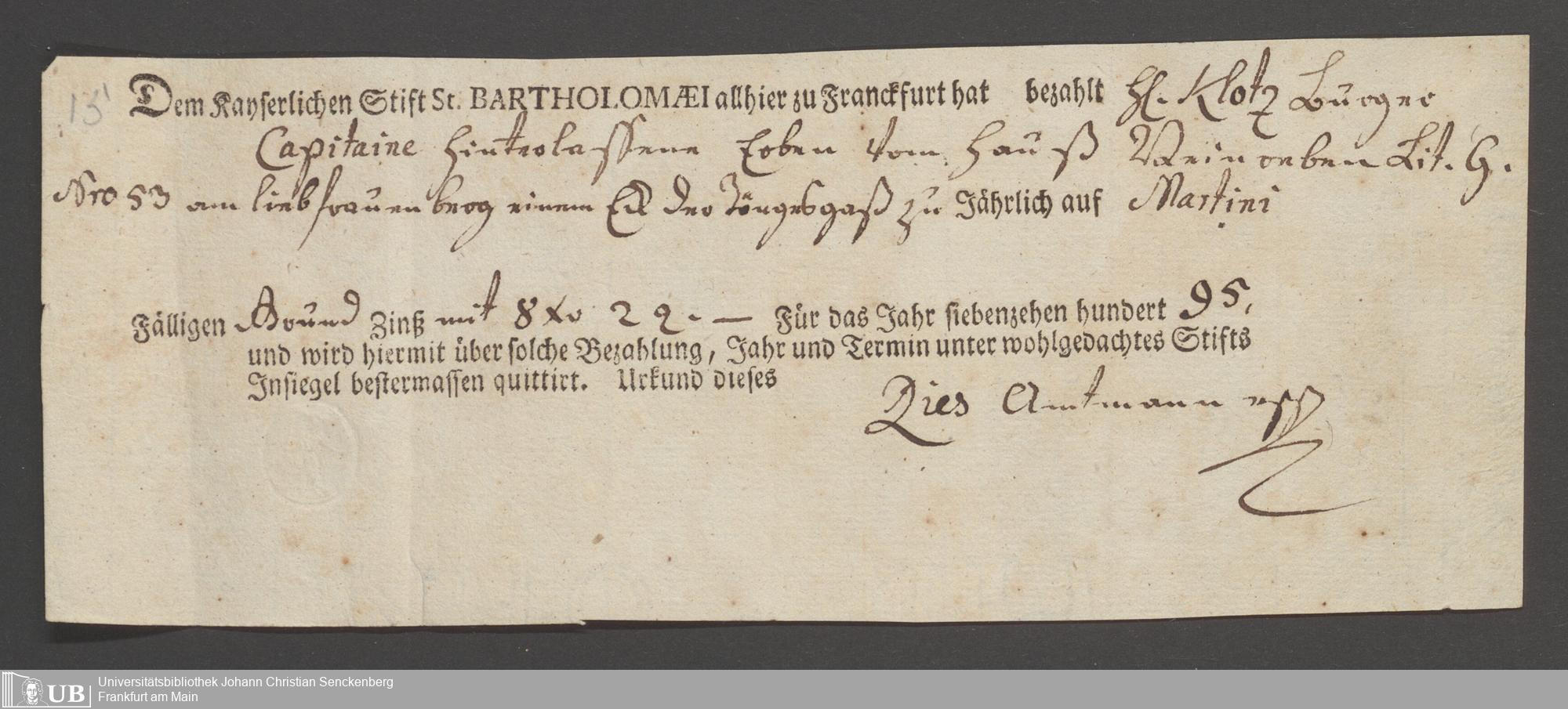B 5 Dr. Senckenbergische Stiftung, 87 - zum Testament Anna Elisabeth Klotz