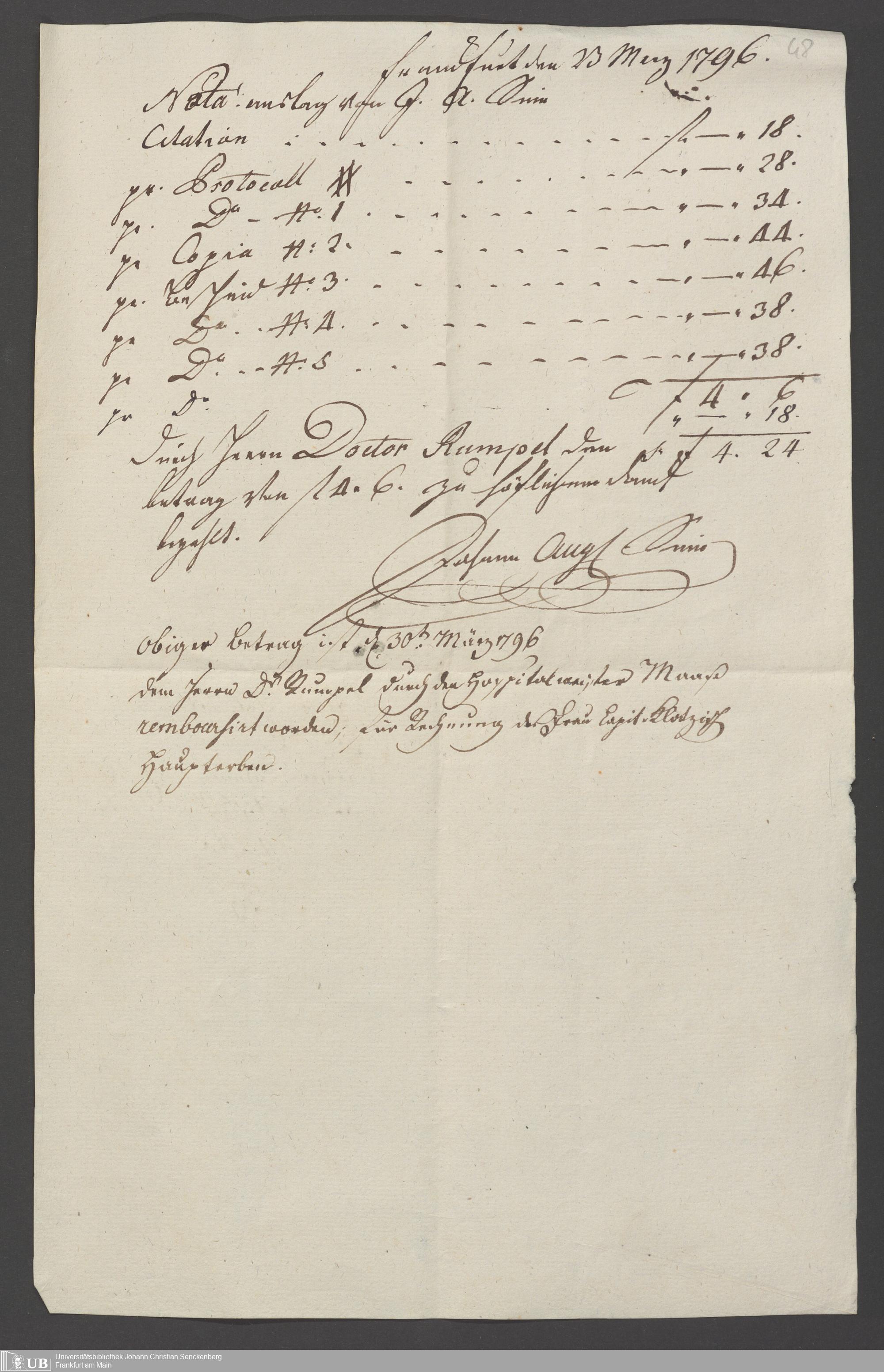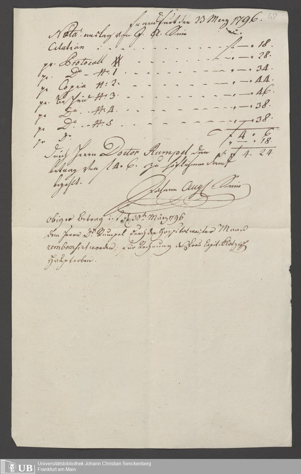 B 5 Dr. Senckenbergische Stiftung, 87 - zum Testament Anna Elisabeth Klotz