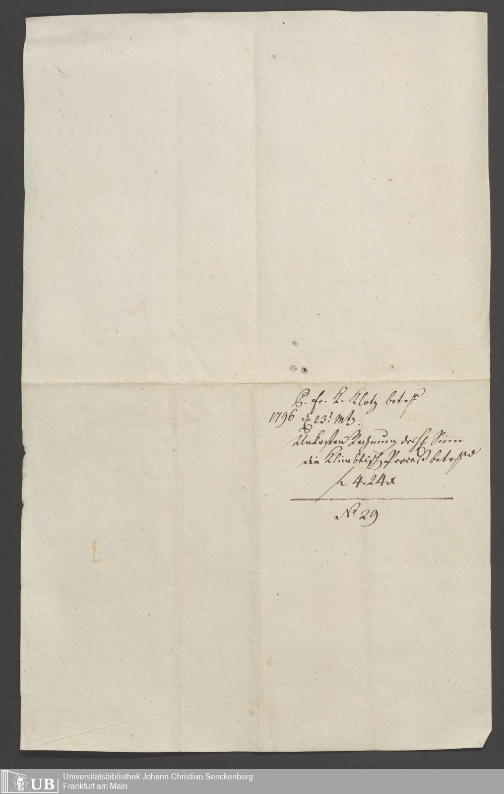 B 5 Dr. Senckenbergische Stiftung, 87 - zum Testament Anna Elisabeth Klotz