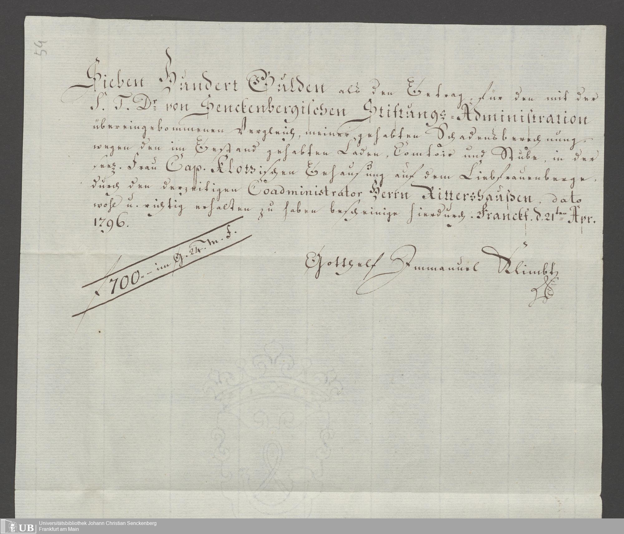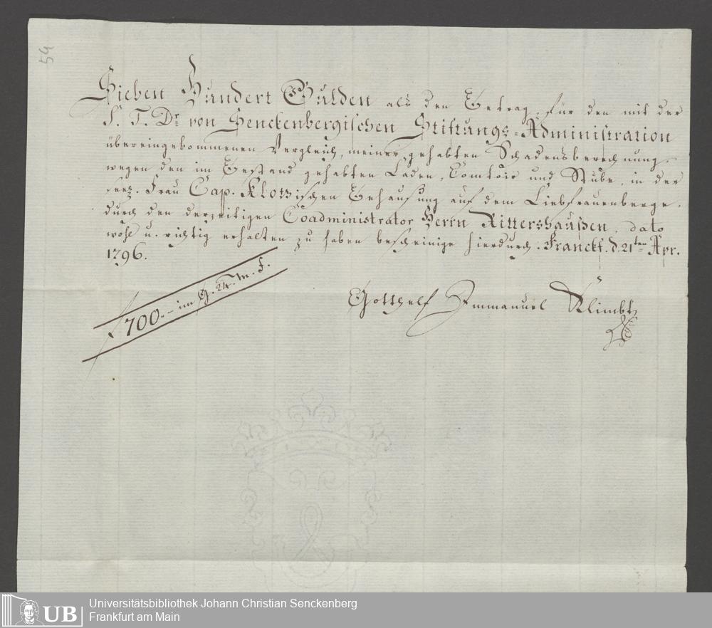 B 5 Dr. Senckenbergische Stiftung, 87 - zum Testament Anna Elisabeth Klotz